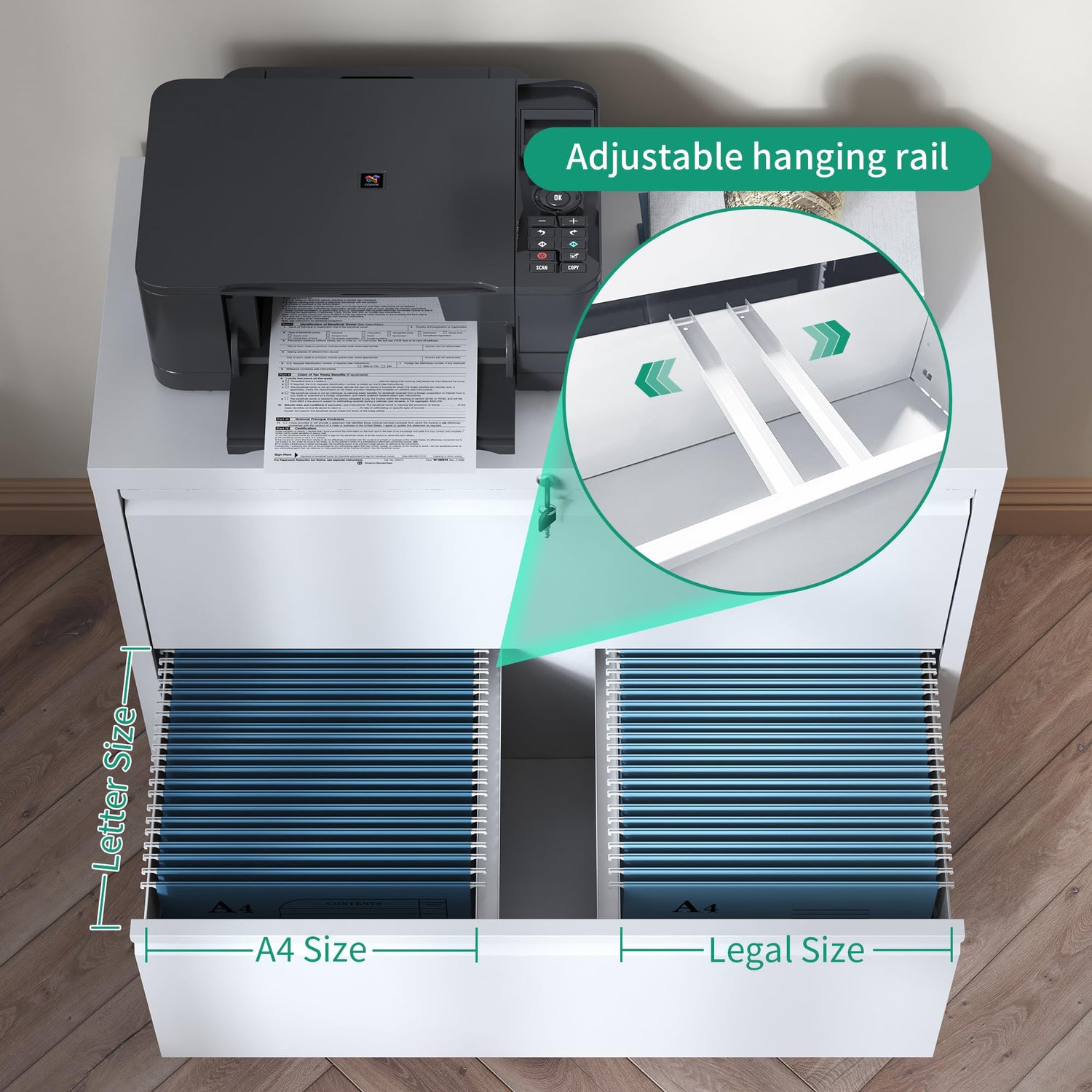 - 【Solid & Durable】Crafted from whole-in-one reinforced high-strength cold-rolled steel, this locking lateral file cabinet ensures remarkable sturdiness and longevity. Each drawer can bear a maximum load of up to 110lbs, showcasing its robust construction. The combination of a strong structure and a powder coating surface process makes this wide cabinet highly resistant to rust, scratches, and ensures easy cleaning, maintaining its pristine appearance over time.