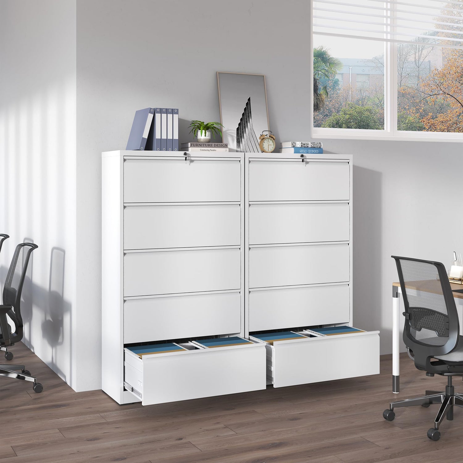 IKIMI 5 Drawer Lateral File Cabinets with Lock Office Filing Cabinet Steel Storage Cabinet Wide Horizontal Filing Metal Cabinets for Files Legal/Letter/A4 Size Assembly Required