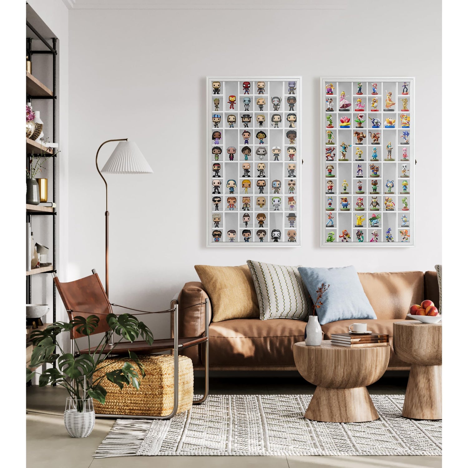 - MULTI PURPOSE DISPLAY CABINET --- Use it to organize and display your precious collection of shot glasses, amiibo, funko pop, mini perfumes, crystals, rocks, miniatures, figurines, Disney collectibles, and much more. No more hiding your collectibles in boxes and drawers where no one can see them! Now you can proudly see all your collectibles in a glance safe tucked away in a display shelf.