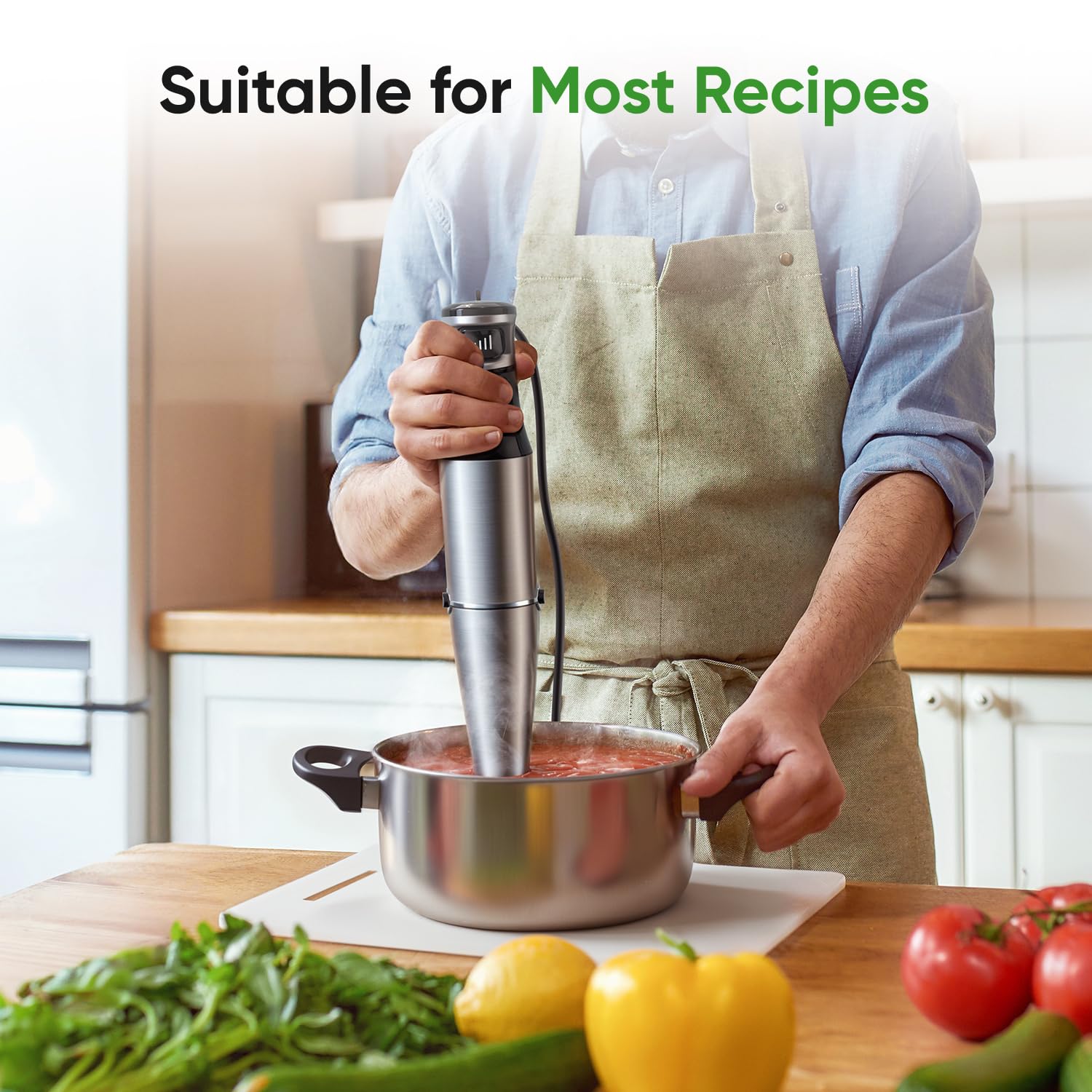 - One-Hand Trigger Speed Control: Comes with a pulse-activated trigger, just one touch to adjust the speed from low to high for blending, pureeing, emulsifying, or whisking. Offering better control when blending hot or cold liquids and reducing splattering and spillage, and freeing your hands for other tasks