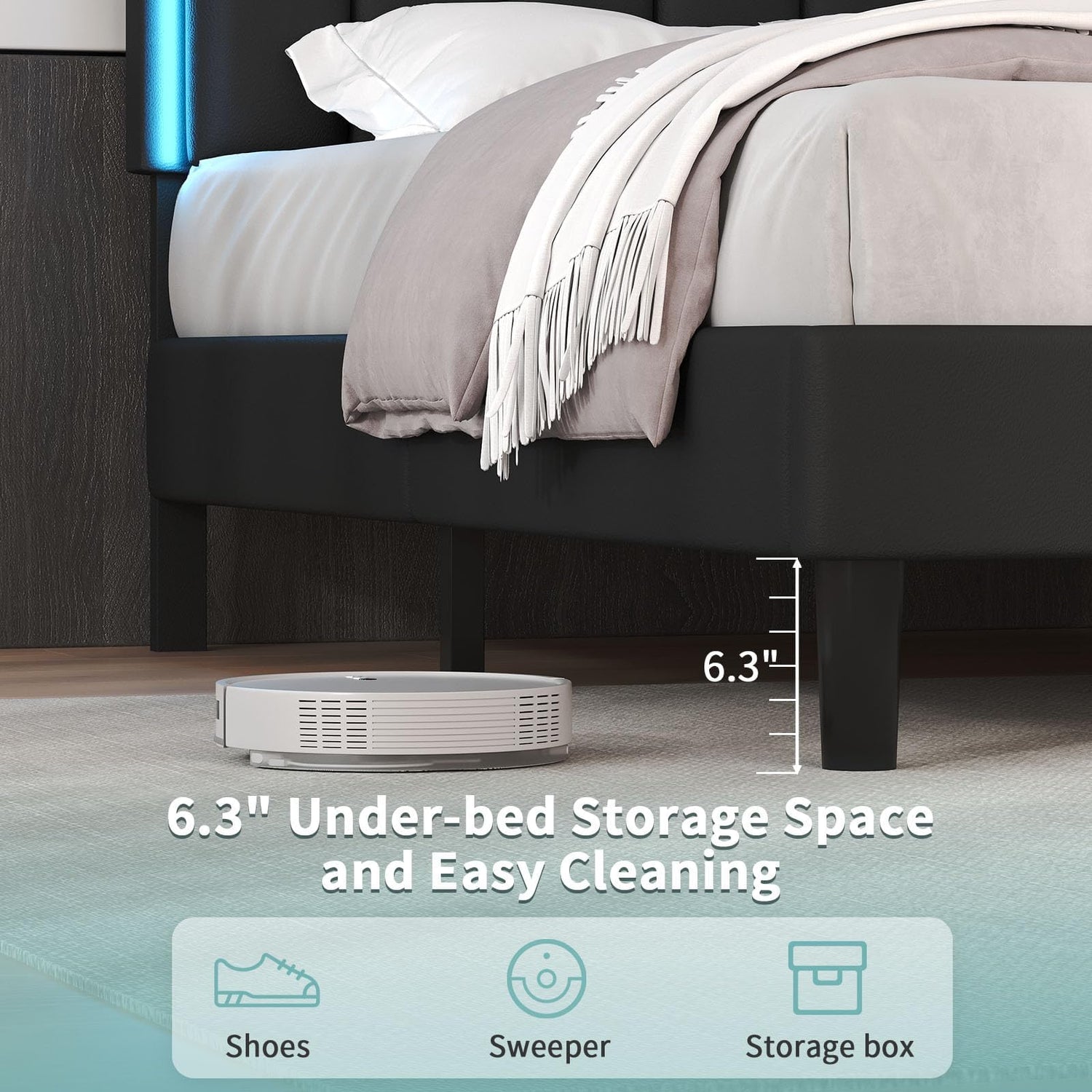 - Bed Frame with RGB LED Light: Queen size bed frame with headboard is equipped with 60,000 colors of LED lights, and you can freely adjust the color, brightness, and mode through the app control