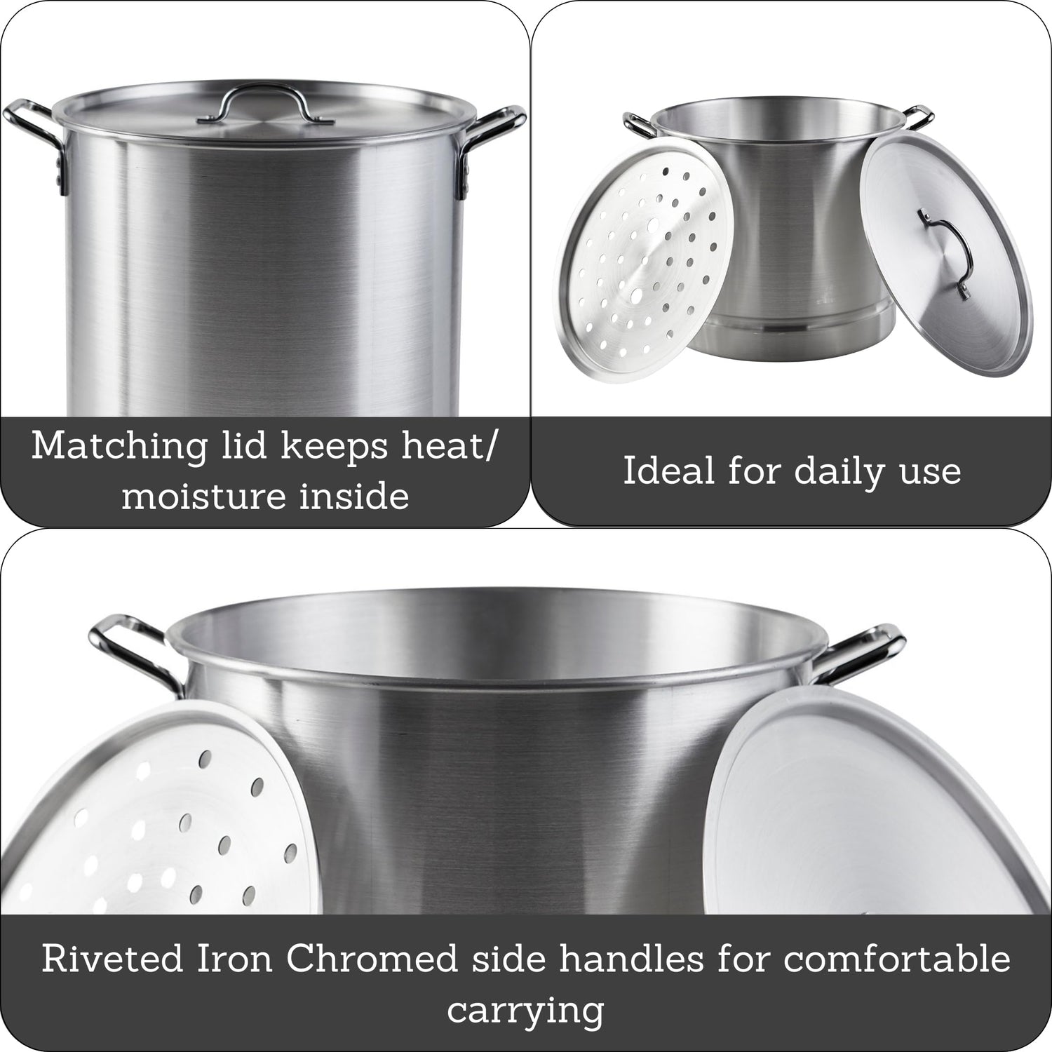 - DURABLE WITH NATURAL FINISH: Crafted from durable aluminum, this steamer features a natural interior finish paired with a polished exterior, offering both reliability and a sleek appearance