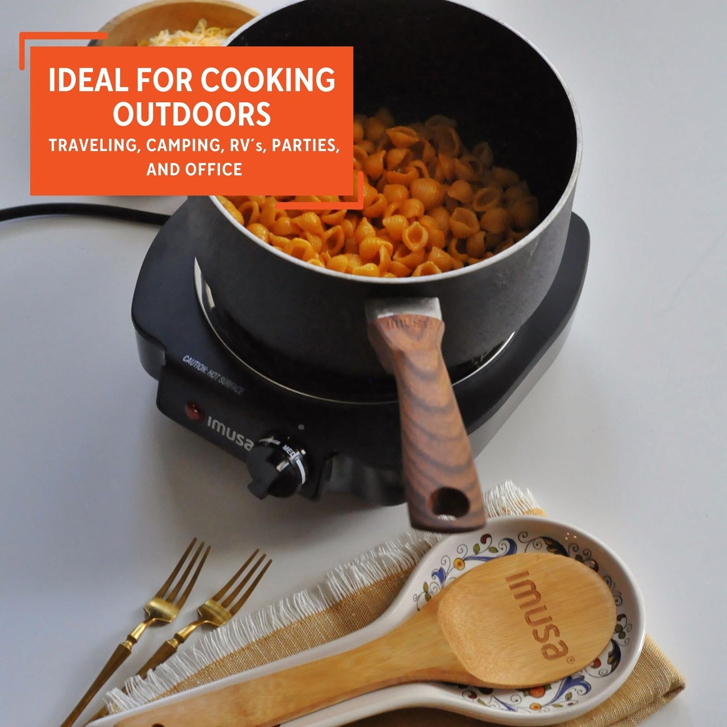 Details: The IMUSA Electric Single Burner is the perfect helper for your on-the-go culinary needs. With a sleek matte black finish and cool-touch construction, this mini-sized cooking top is not only portable but also adds a touch of style to your culinary space. The single coil design of this electric burner makes it easy to store and carry, providing a great alternative cooking option wherever you go. Featuring rubber feet for stability, a power indicator light, and adjustable temperature control, the IMUSA Electric Single Burner ensures convenience and precision in your cooking. Designed with practicality in mind, the stainless steel drip pan makes cleanup a breeze after cooking, frying, boiling, or warming up food. The versatility of the IMUSA Electric Single Burner makes it an ideal companion for traveling, cooking outdoors, camping, RV adventures, parties, and office use. Trust the IMUSA Electric Single Burner as your go-to kitchen helper. It will surely become your kitchen's beloved companion simplifying and enhancing your culinary endeavors.