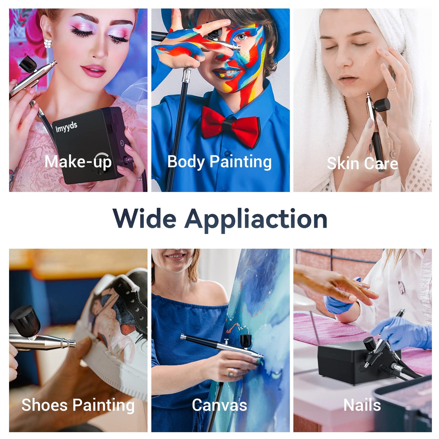 - 【Wide Application】The airbrush kit is friendly to beginners as well as for professional painters since its great performance for a variety of applications such as painting, model painting, makeup, cake decorating, temporary tattoo, nail beauty, facial care, car & helmet painting, T-Shirt painting, shoes painting, barber shop, etc.