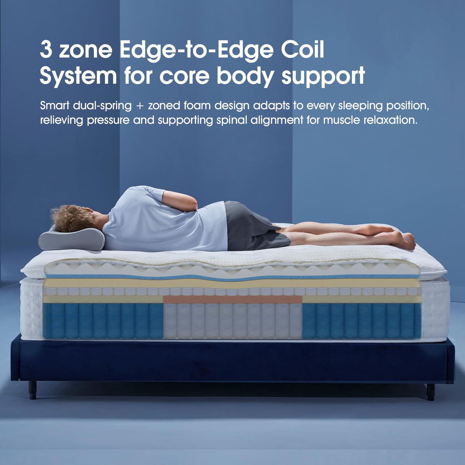 INCEPDREAM 14 Inch Queen Size Luxury Hybrid Mattress with Pillow Top, Latex and Memory Foam, Cooling Tencel Fabric, Dual-Layer Pocket Coils for Pressure Relief and Support, CertiPUR-US Certified