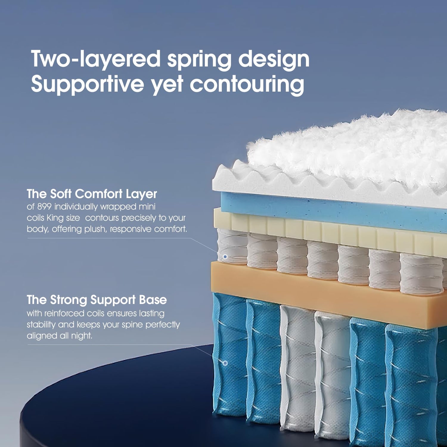 - Dual-Layer Pocket Springs for Support. Individually wrapped coils in a dual-layer system offer balanced support and help minimize motion transfer, so you can rest without disturbance.