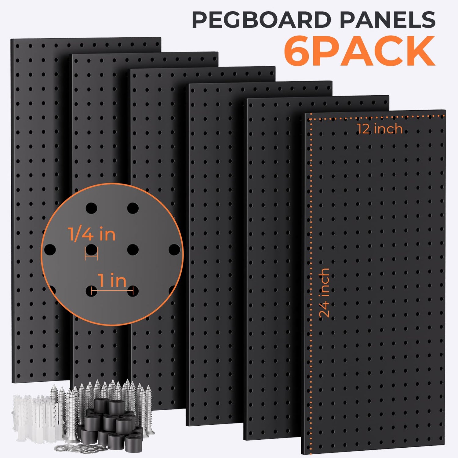 - THICKER METAL PEGBOARD PANELS: With size 12"x24", the 6pcs black pegboard are made of high quality metal material, also the all metal construction and black galvanized finish provides maximum strength, resist rust and corrosion. Recommend to install pegboard on solid wall, such as wood, brick, conceret wall, Not drywall