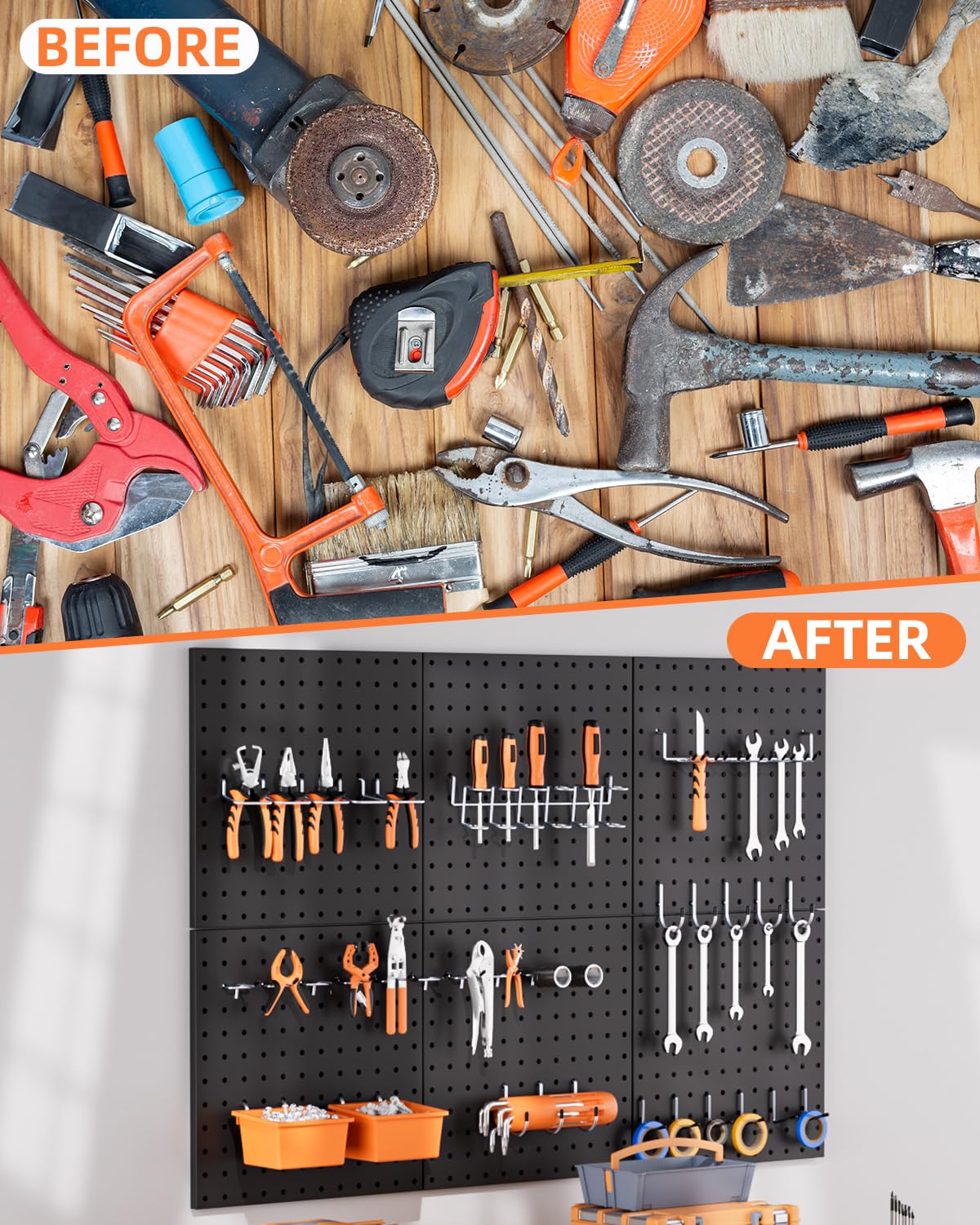 - EASY TO INSTALL: There are mounting hardwares and installation guide included in package to have a clear understanding of our pegboard tool organizer, all you need is an electric drill and a level to make sure they are lined up for mounting on into the wall