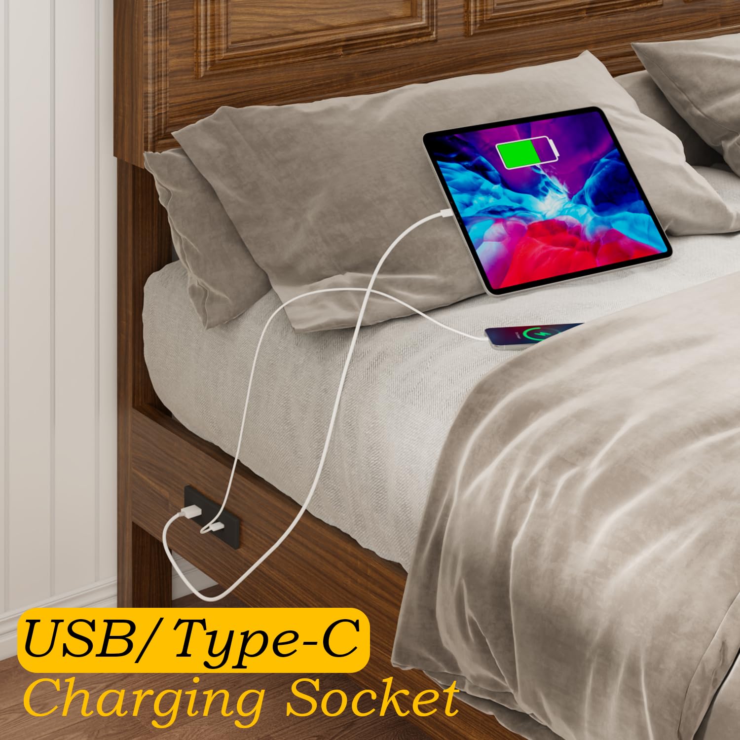- Built-in Charging Station: Stay connected with USB and Type-C charging ports of wood bed frame, solve battery problems