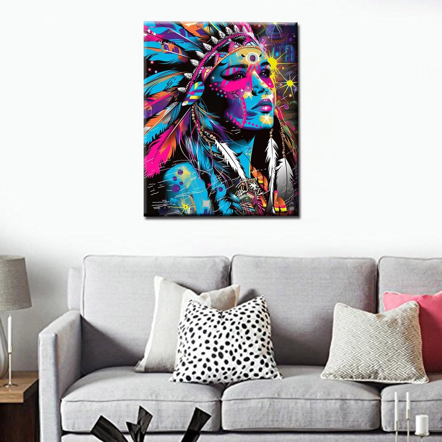 Indian Girl 5D Diamond Painting Kits for Adults, Tribal Culture Full Drill Round Diamond Cross Stitch Body Painting Diamond Painting by Number Kits Easy to Paint on Canvas for Home Decor 12x16 inch