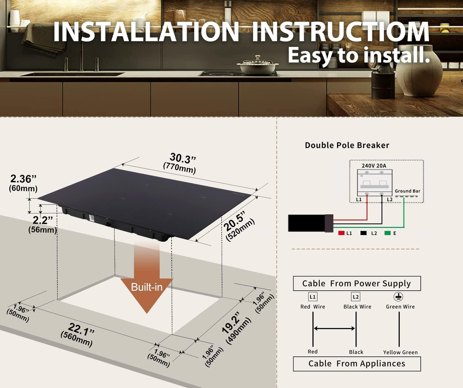 Induction Cooktop 30 Inch with 4 Burners Built-in Induction Electric Stovetop with Boost/Timer & Child Safety Lock/9 Power Levels 7000W (NO PLUG)