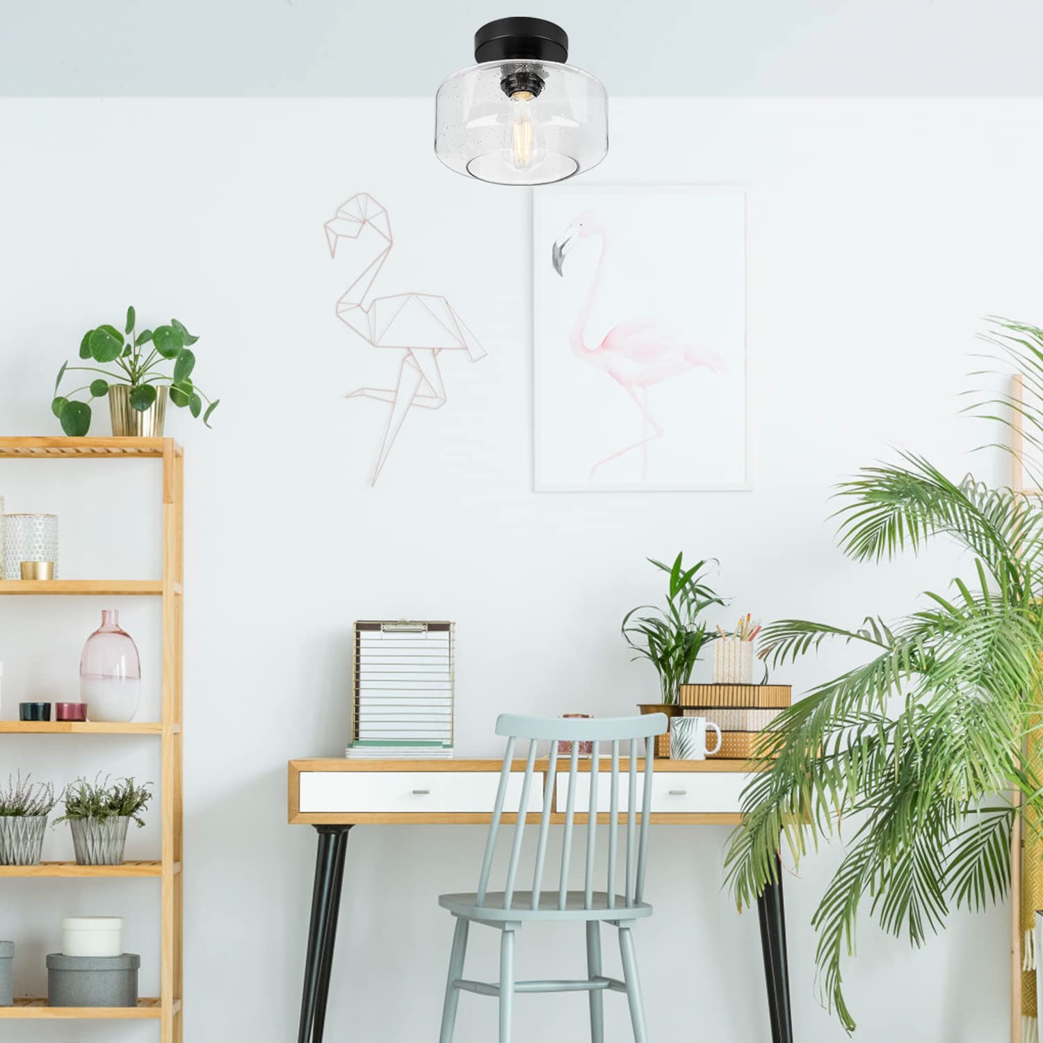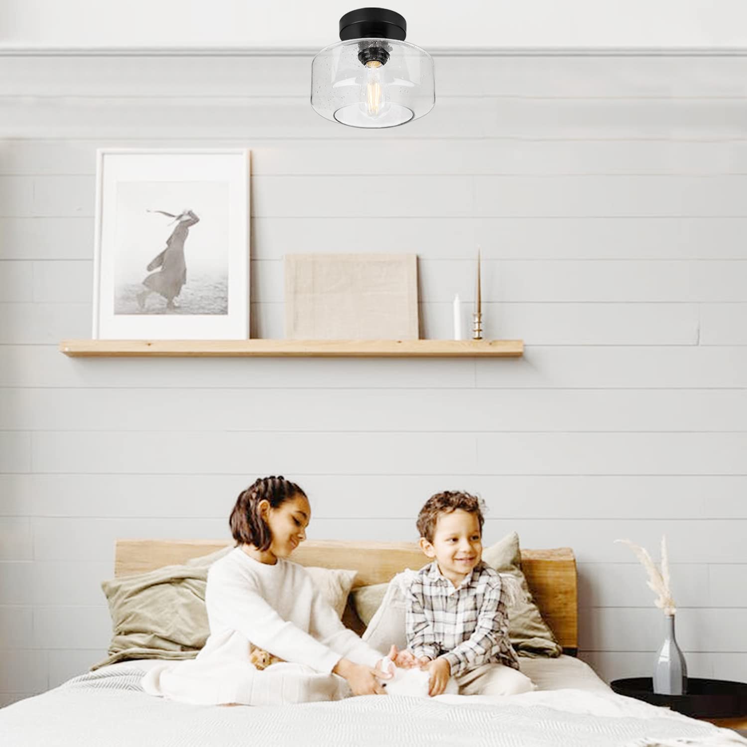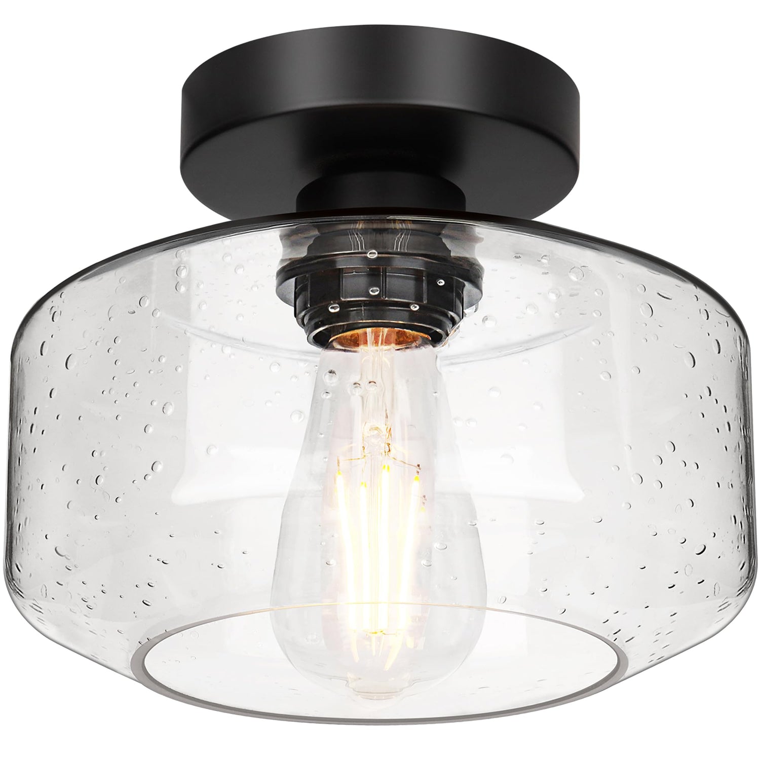 - Semi Flush mount Design& Vintage Style--- This ceiling light is perfect for vintage farmhouse and industrial decors. A Matte Black Base complements the seeded glass and heightens the classic industrial look of this ceiling light, the bubble glass casts a nice shadow on the ceiling, creates a romantic atmosphere to your home.(UL Listed)