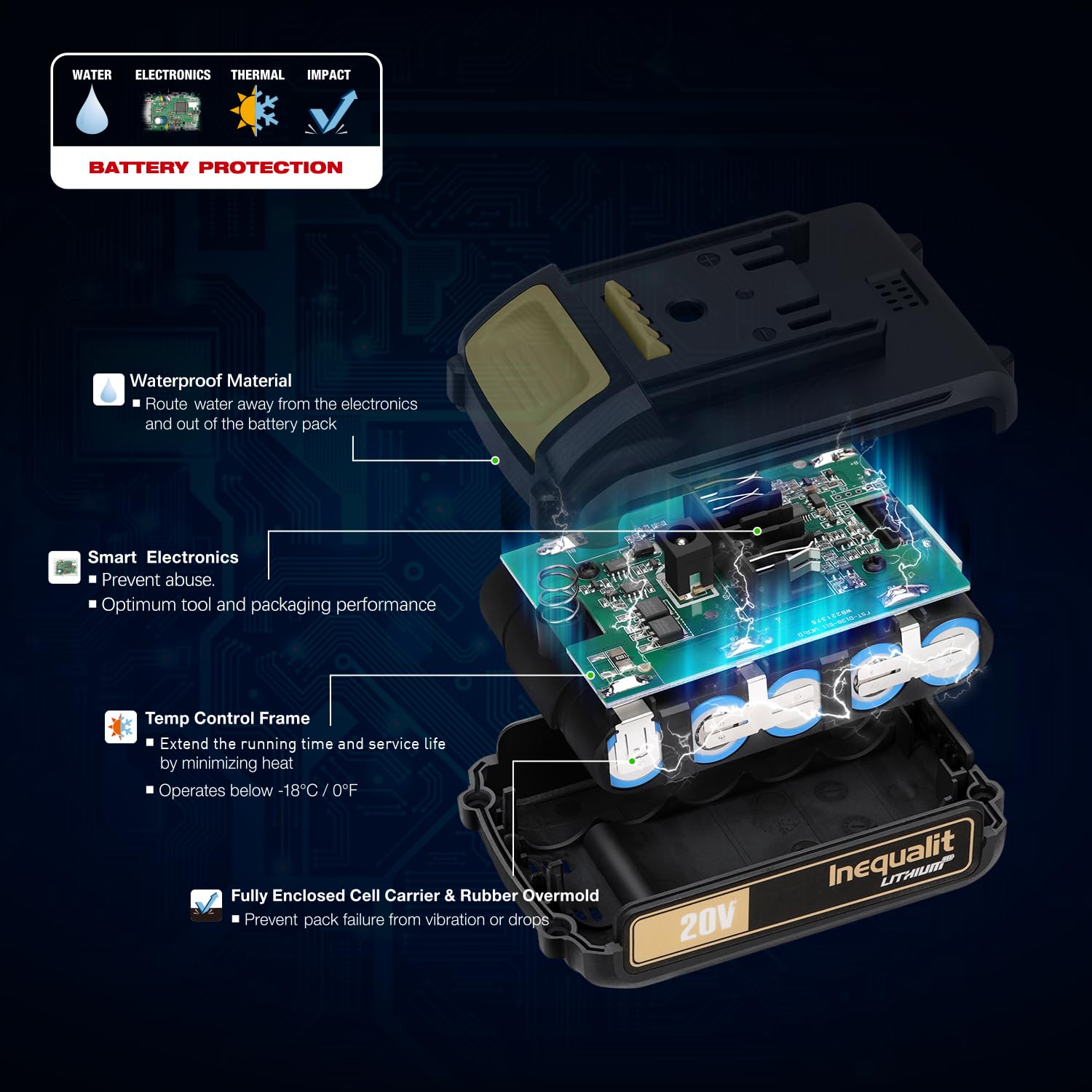- Attention please: This product can only use batteries of the same brand(Inequalit), and is not compatible with battery packs of other brands.