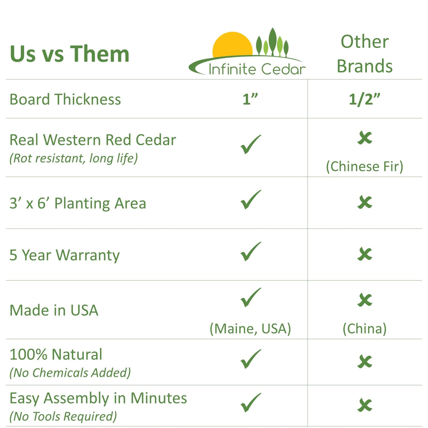 Infinite Cedar Premium Cedar Raised Garden Bed - 3' x 6' x 11" - Handcrafted in Maine from North American Western Red Cedar Wood