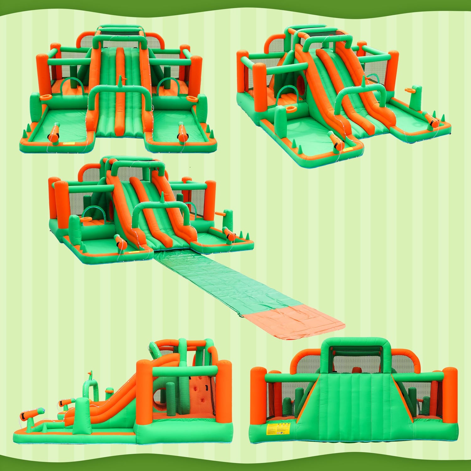 - Water Slide: The size dimensions of this inflatable water slide for kids are 196 x 192 x 93 inches. It is suitable for 1-8 children to play at the same time. It can hold up to 500 lbs. It can be commercial or domestic