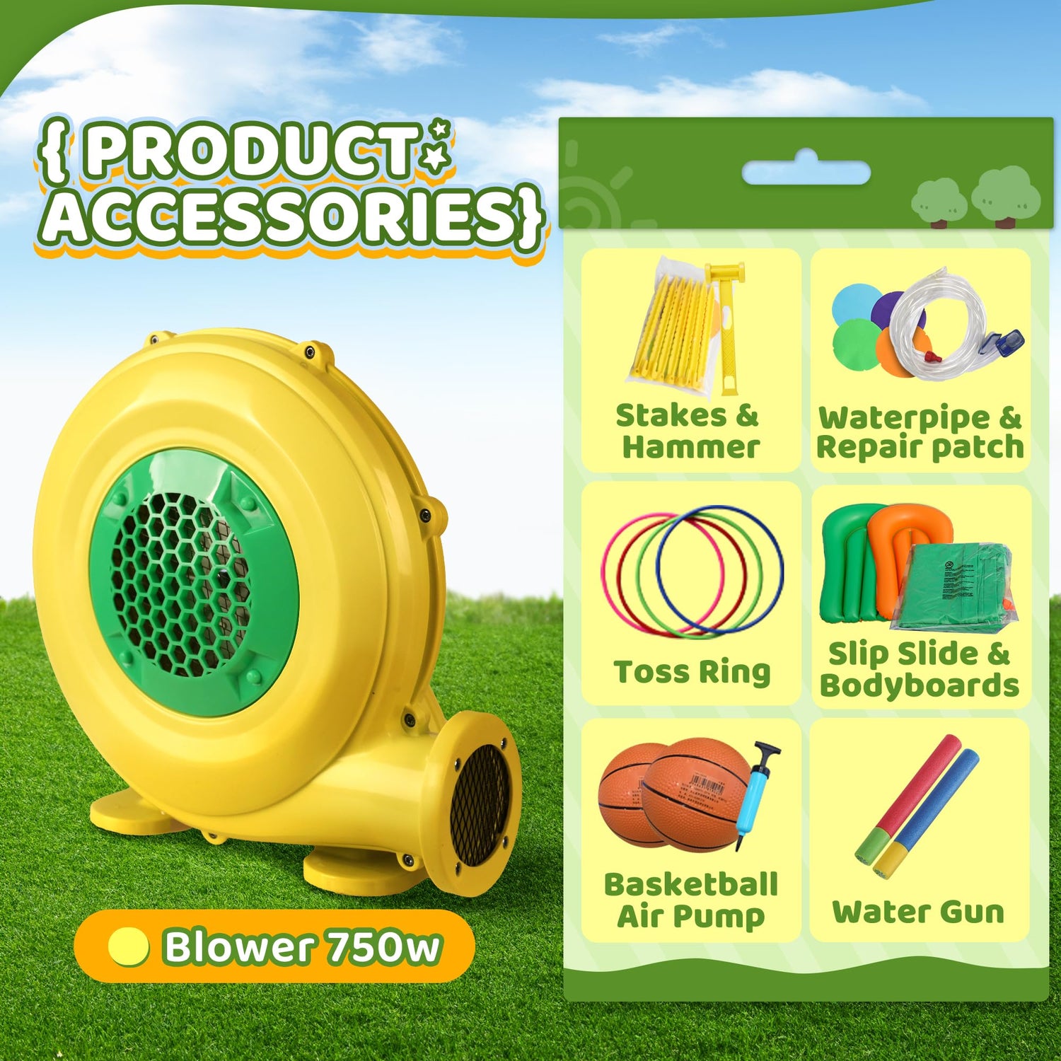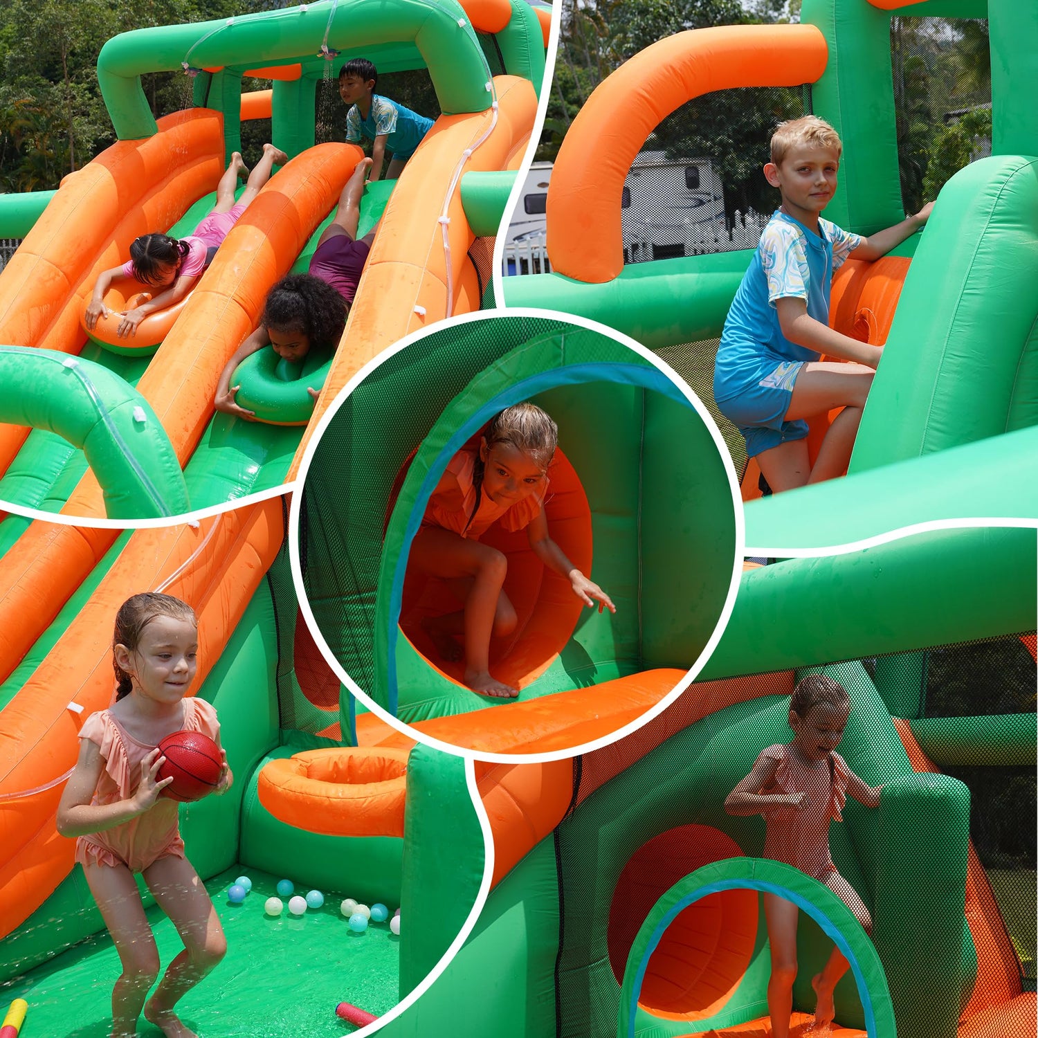 INFLATEFLY Bounce House Big Water Slide for Kids Bouncy House Inflatable Waterslide Bouncy House Water Park Castle with Slip and Slide, Water Sprays, Ball Pit Wet or Dry