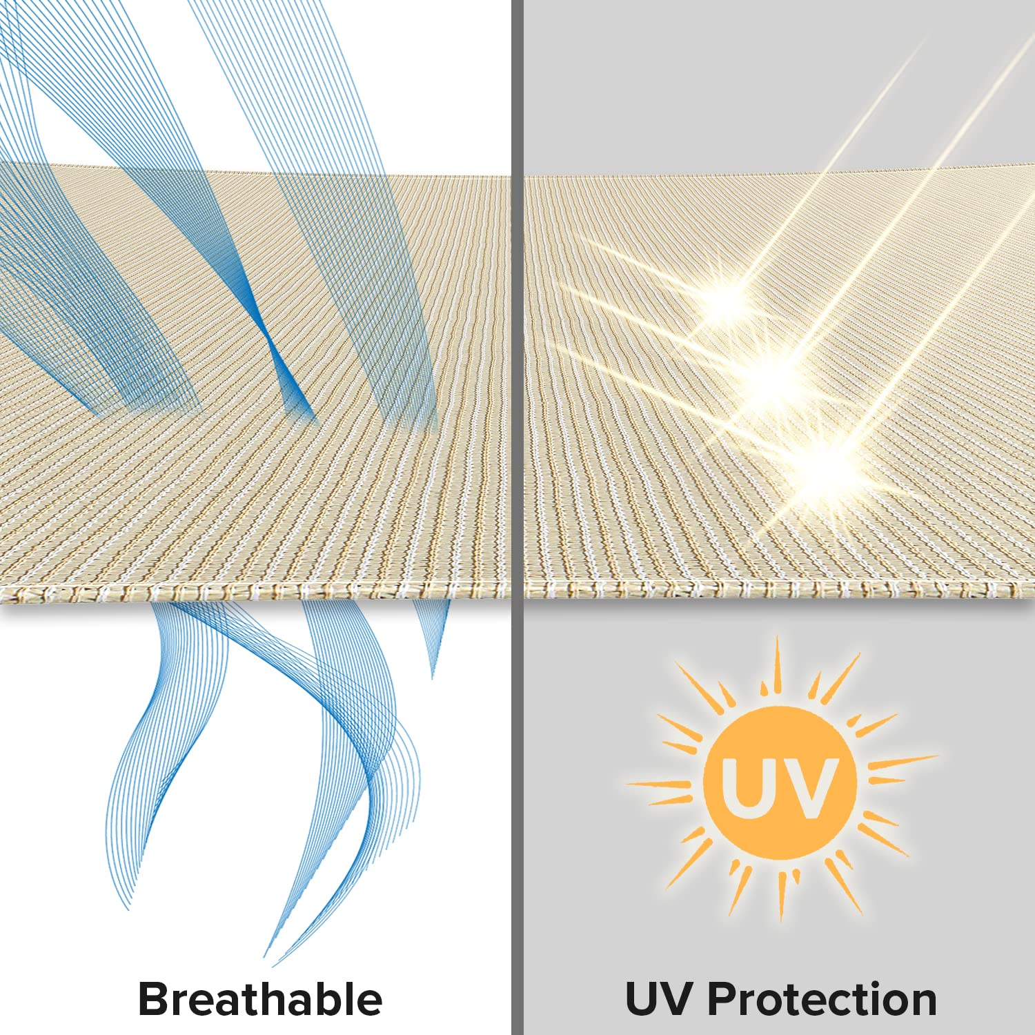 - Air Permeability & UV Blockage: Blocks up to 95% harmful UV and sunlight. Allows water and air to go through to increase the sail's cooling power, Not waterproof. The edges are curved (not straight) to enhancing pull strength and preventing drooping