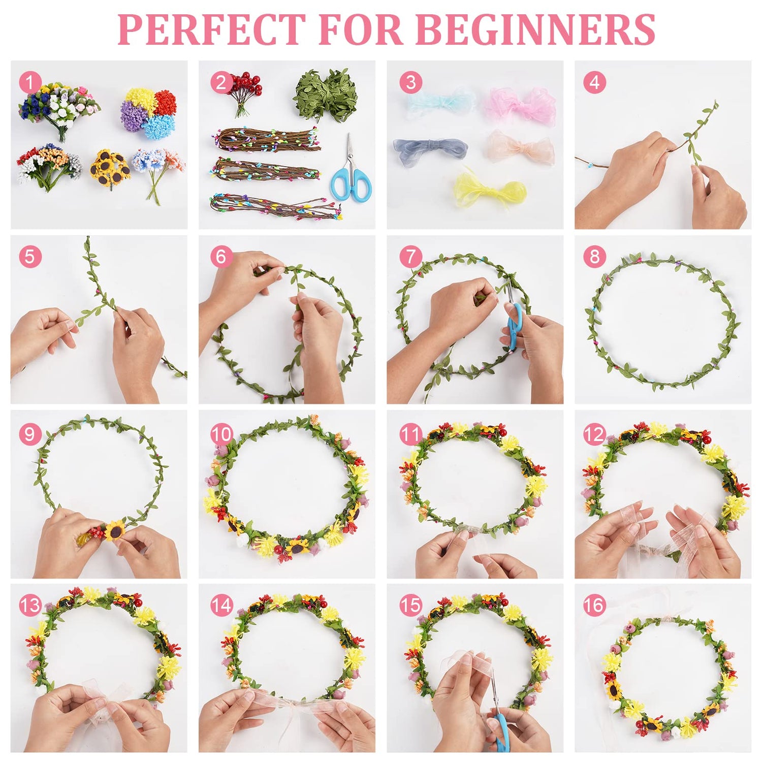 - Detailed Instructions for Use: This diy flower crown headband making kit is easy to carry out, and with very detailed instructions, follow our step-by-step instructions and you will get a very beautiful wreath!