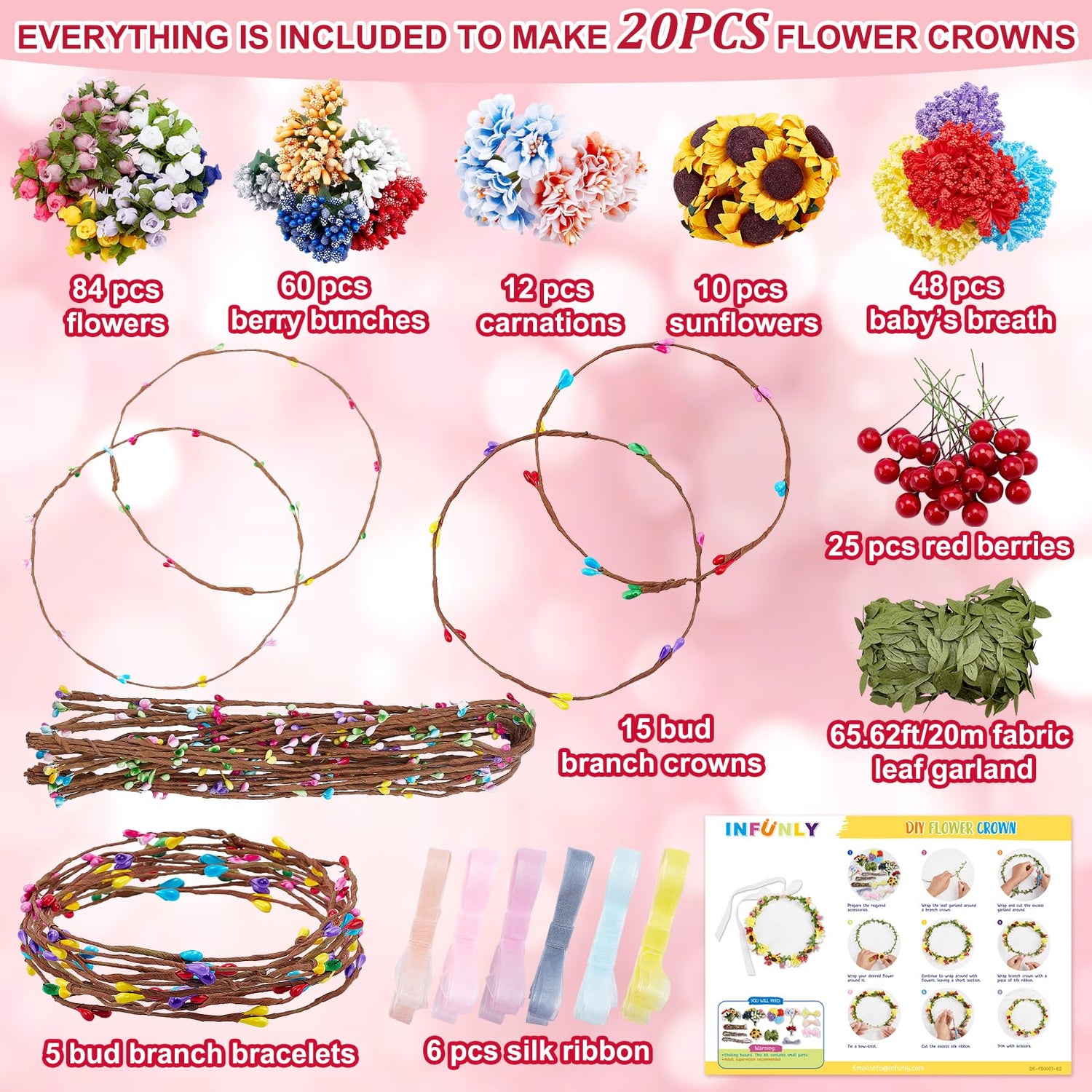 INFUNLY 261pcs/Set DIY Flower Crowns Making Kit Handmade Floral Crown Garland Kit Make Your Own Flower Wreath Bridal Shower Wreaths Gift for Women Wedding Home Decor