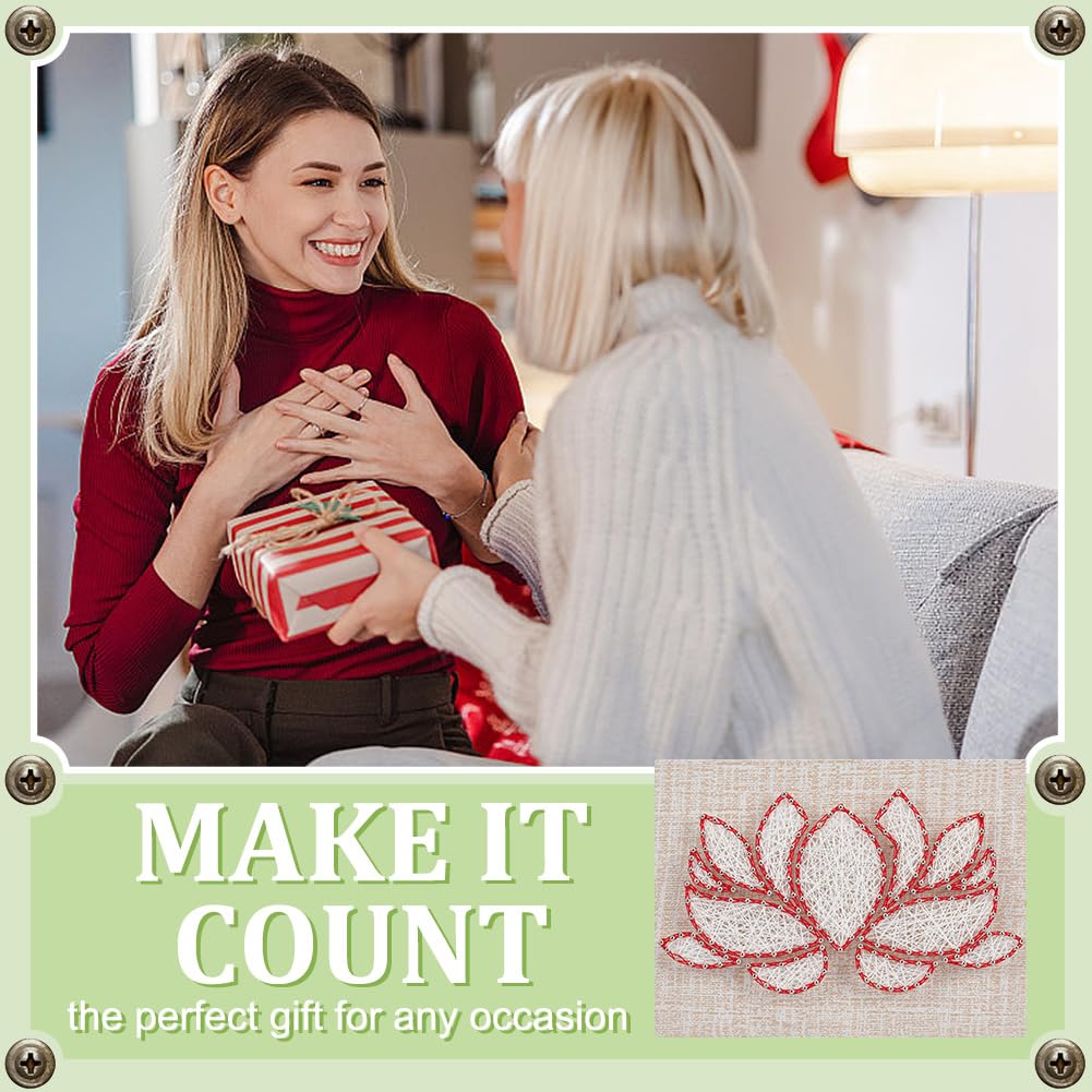 INFUNLY DIY Lotus Flowers String Art Kit for Adults, 9x6.2 inches, Modern Floral Wall Art, Easy to Make DIY Nail String Art Kit with Instruction, Multicolor, Unisex, Non-Foldable