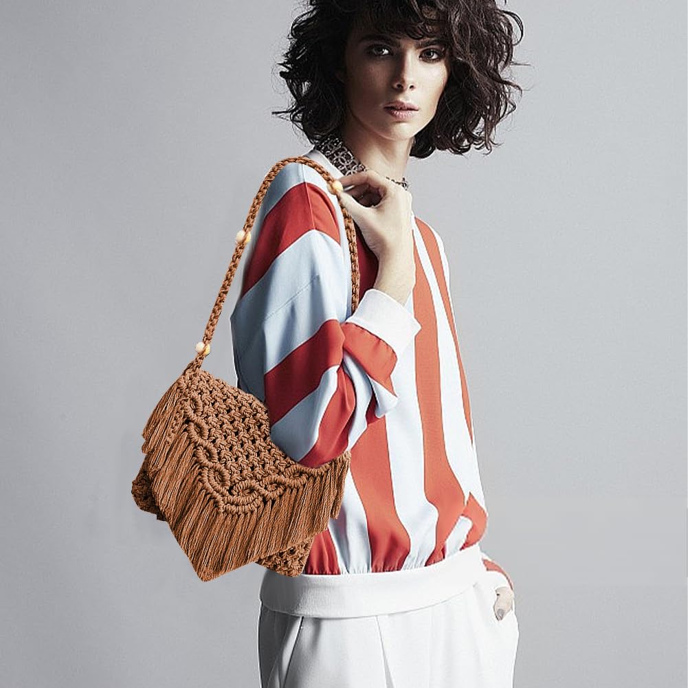 - UNIQUE DESIGN: Featuring a cross body strap and pure tones, our macrame bag exudes a rustic charm that pairs well with jeans, t-shirts, jackets, and dresses. This eye-catching accessory is a must-have for standing out during your holidays.