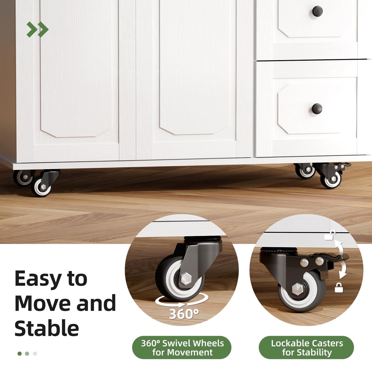 - Flexible Universal Wheels: Easily move the kitchen cart between rooms with 360-degree swivel wheels. Lock the wheels in place when needed, ensuring stable positioning for use as a stand or workstation