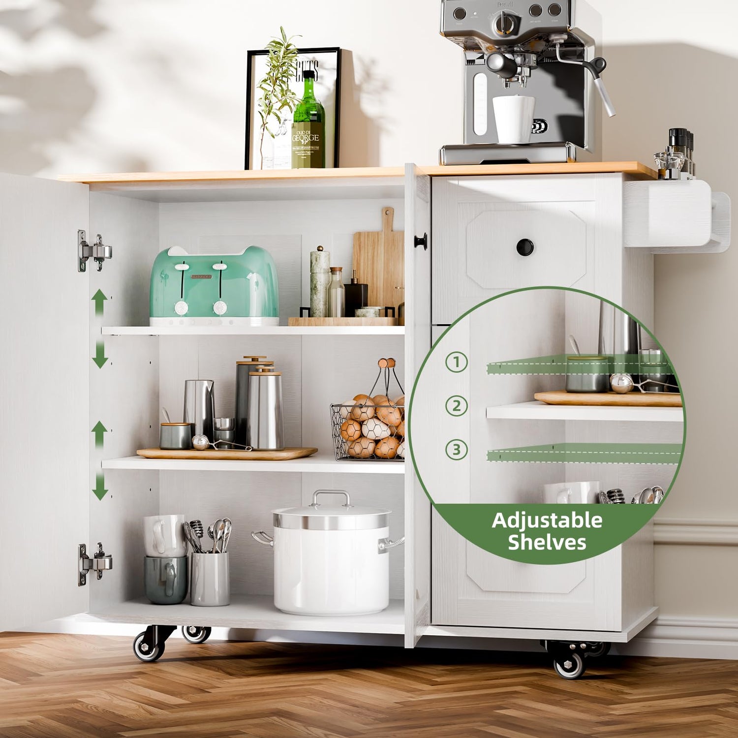 - Durable and Sturdy Build: Made from high-quality wood and MDF, this kitchen island is built to last. The adjustable cabinet shelves allow you to store items of various sizes with ease