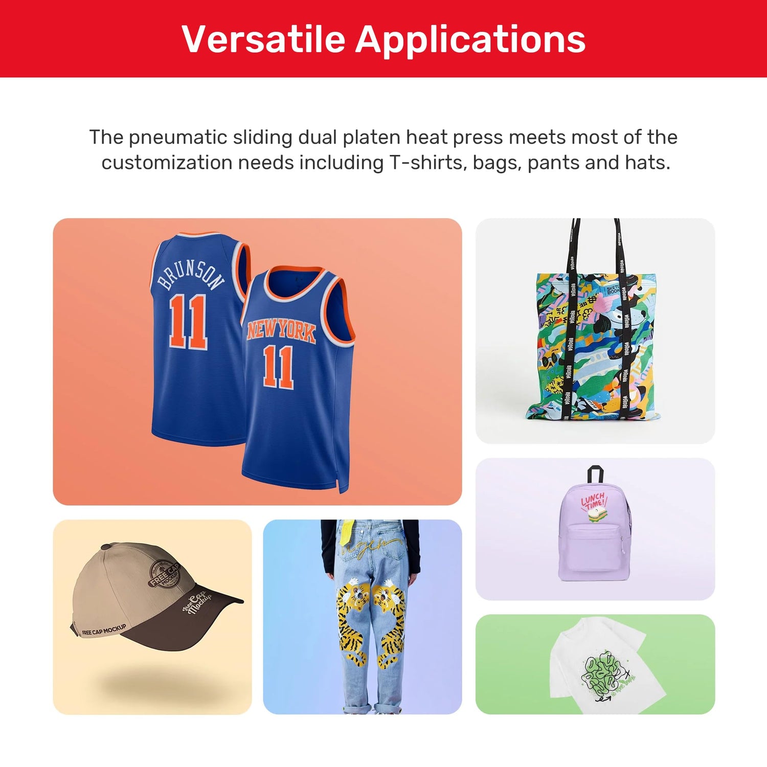 - ✅[Dual 16x24 Platen] Designed for oversized and high-efficiency printing, this large heat press machine is ideal for large format sublimation transfer & DTF transfer tasks. Operators can prepare the next t-shirt/item while the current one is being pressed, boosting efficiency by 100%.