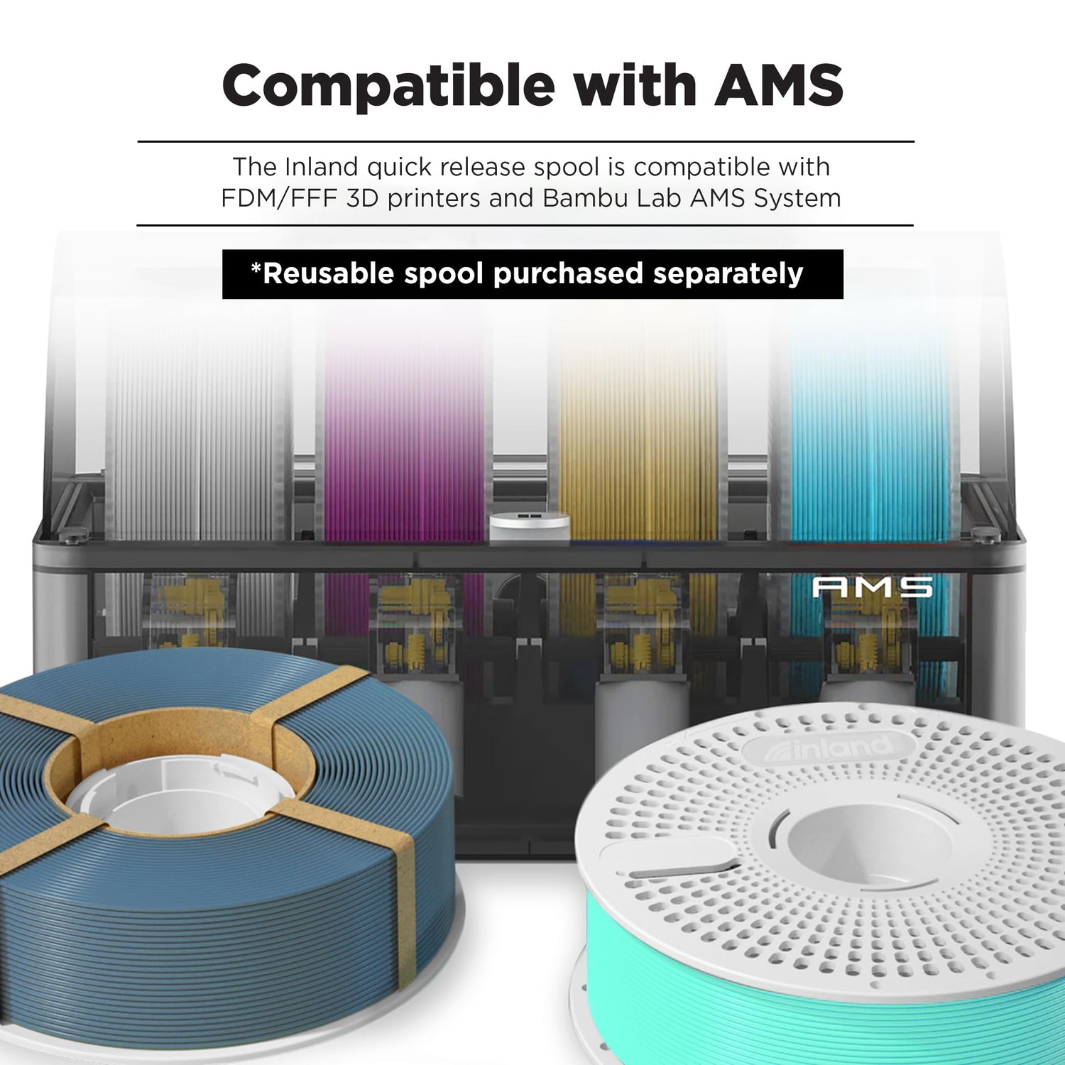 - Inland V2 Plastic Spool: The new V2 reusable spools is compatible with: Inland V2 Spooless Filament and Bambu Lab Spooless Filament. It is also compatible with popular 3D printers including AMS, X1C, P1P, A1 Mini, M5, K1, K1 Max, K1C, CFS, Voron 2.4, V400, MK3, Ender 3, Kobra, and more.