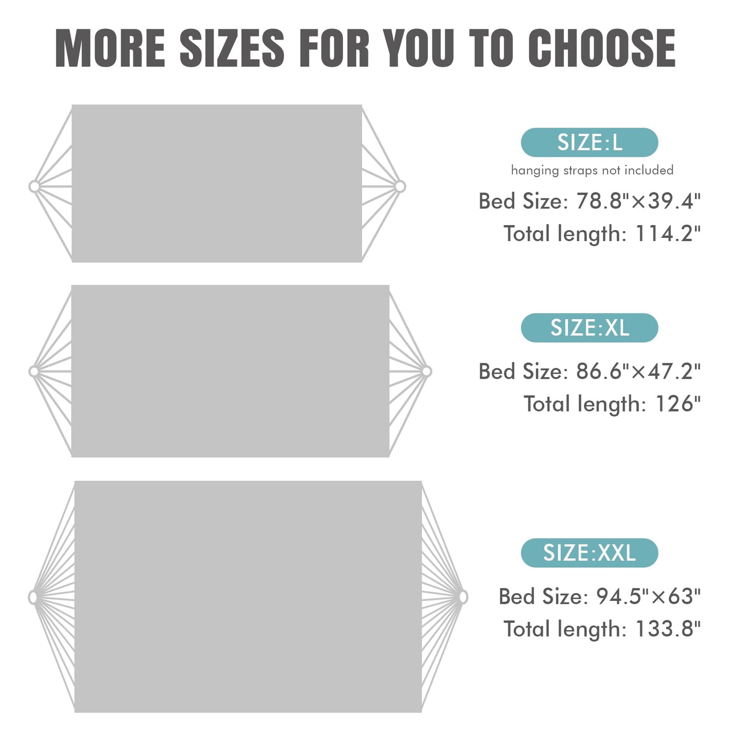 - Large size for most people - 2 person hammock is 133.8" long x 63" wide. and the bed size is 94.5" long x 63" wide with a 350LBs capacity, the rope length is 9.8FT*2, created in the style that has been handed down for generations by native artisans in Northeastern Brazil, making it cozy and soft