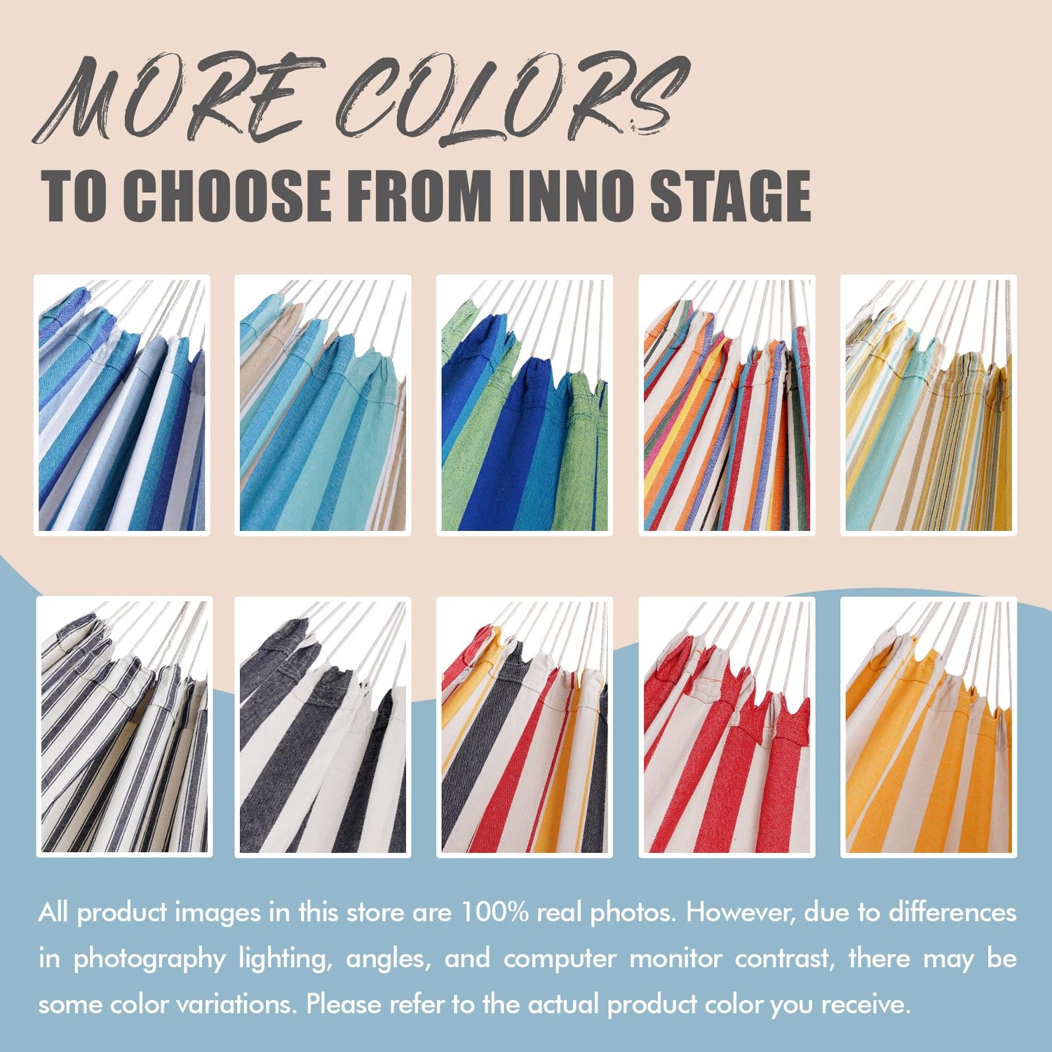 INNO STAGE Double Hammock - 2 Persons Portable Hanging Camping Bed, Blue, 118.3"L x 63"W, 350Lbs Capacity, Polyester, Supports Up to 350 lbs
