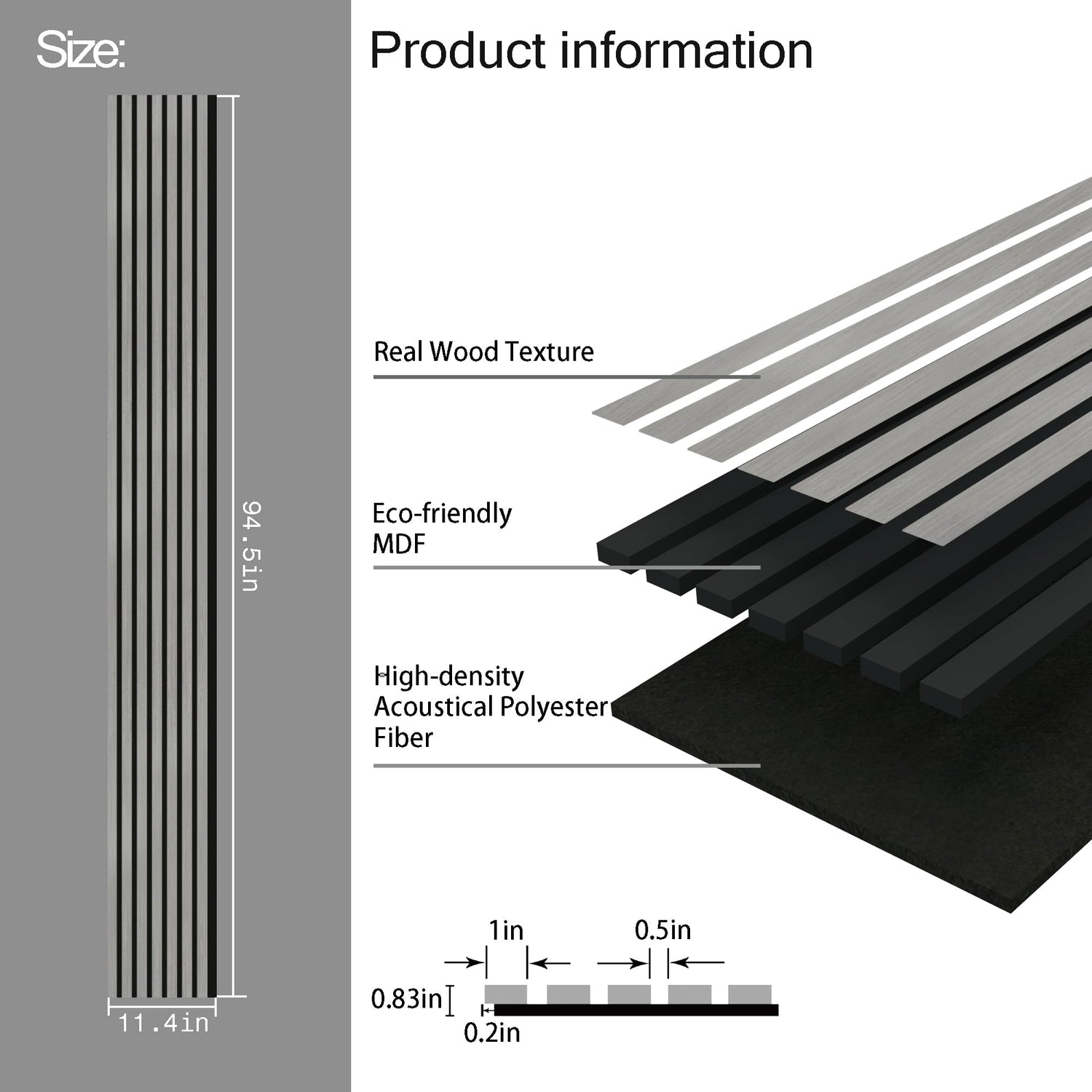 - 3 Premium Pieces - Each acoustic wood wall veneer slat panel within the box measures 94.5 x 11.4 in., which can covers around 22.4 sq.ft. Recommended to purchase a sample pack first to select the color and style for your project prior to placing the final order.