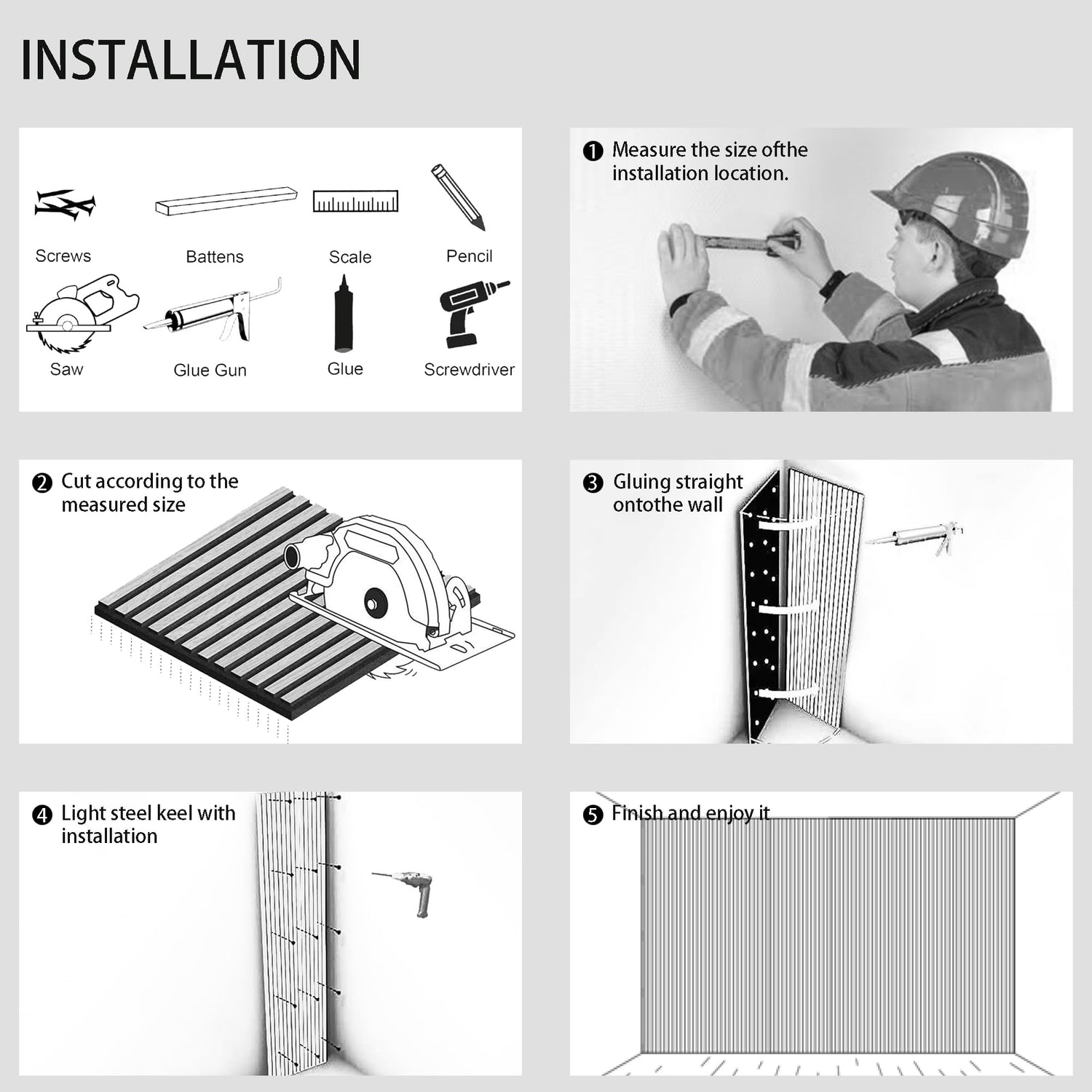 - Easy Installation - Whether applied to a single wall or an entire room, including the ceiling, achieving effective noise reduction by slat wall paneling is simple with just some glue or screws. Detailed installation instructions can be found inside the packaging.