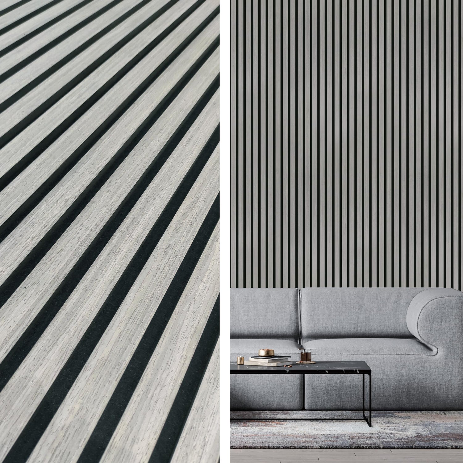 INNO STICKERS 3-Piece Wood Slat Wall Panel for Interior Wall Decor Noise Cancelling 94.5" x 11.4" Acoustic Decorative 3D Sound Absorbing Wall Paneling, Gray Oak, 22.4 Sq.Ft