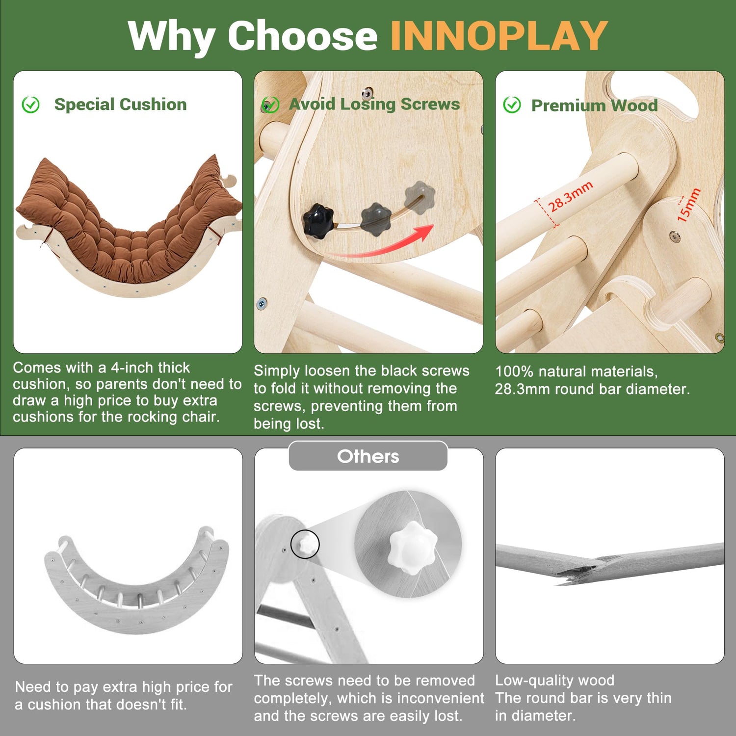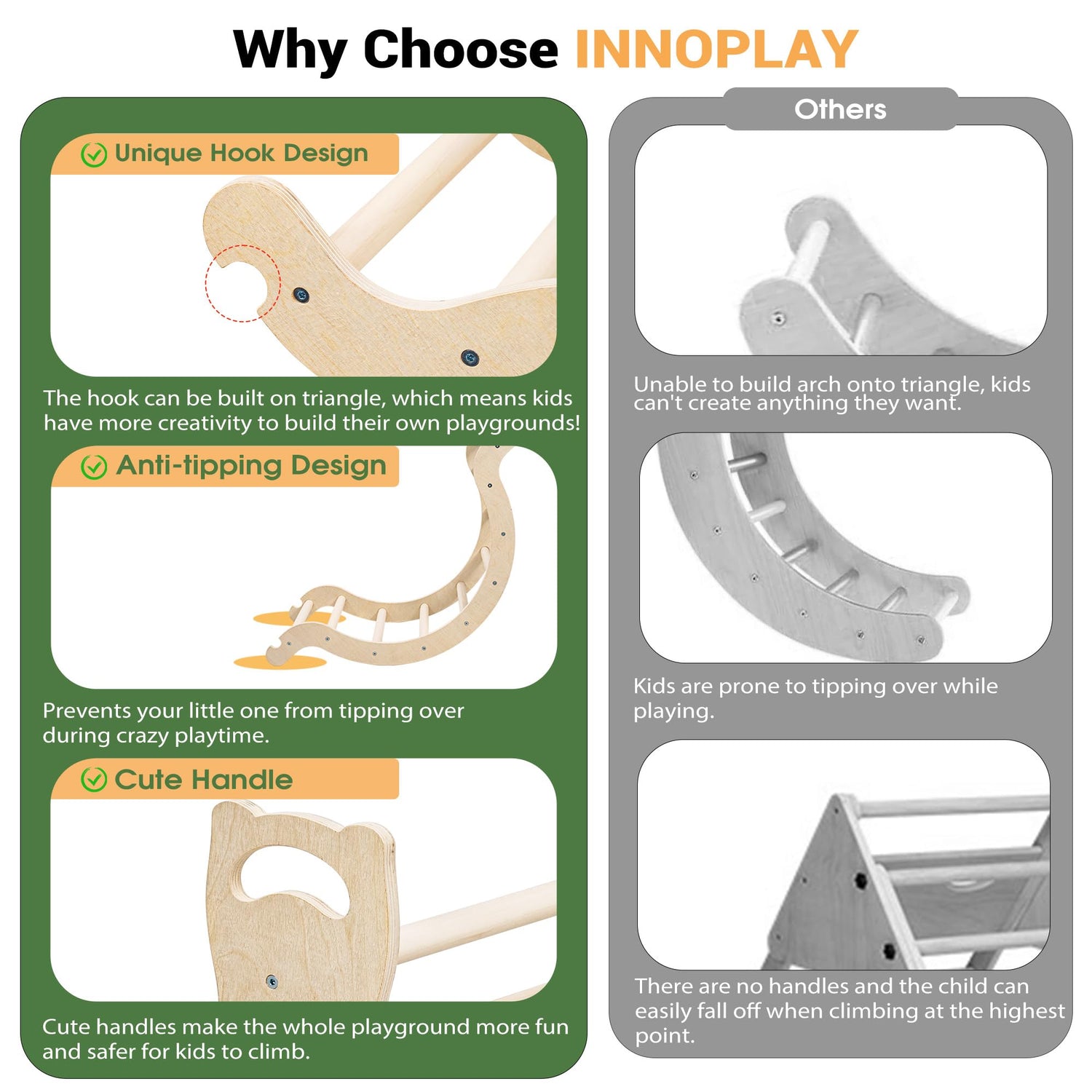 - Experience Upgrades: Specially sized cushions, suitable for rocking arch. Unique hook means kids have more creativity to build their own playgrounds, anti-tipping design prevents your little one from tipping over during crazy playtime