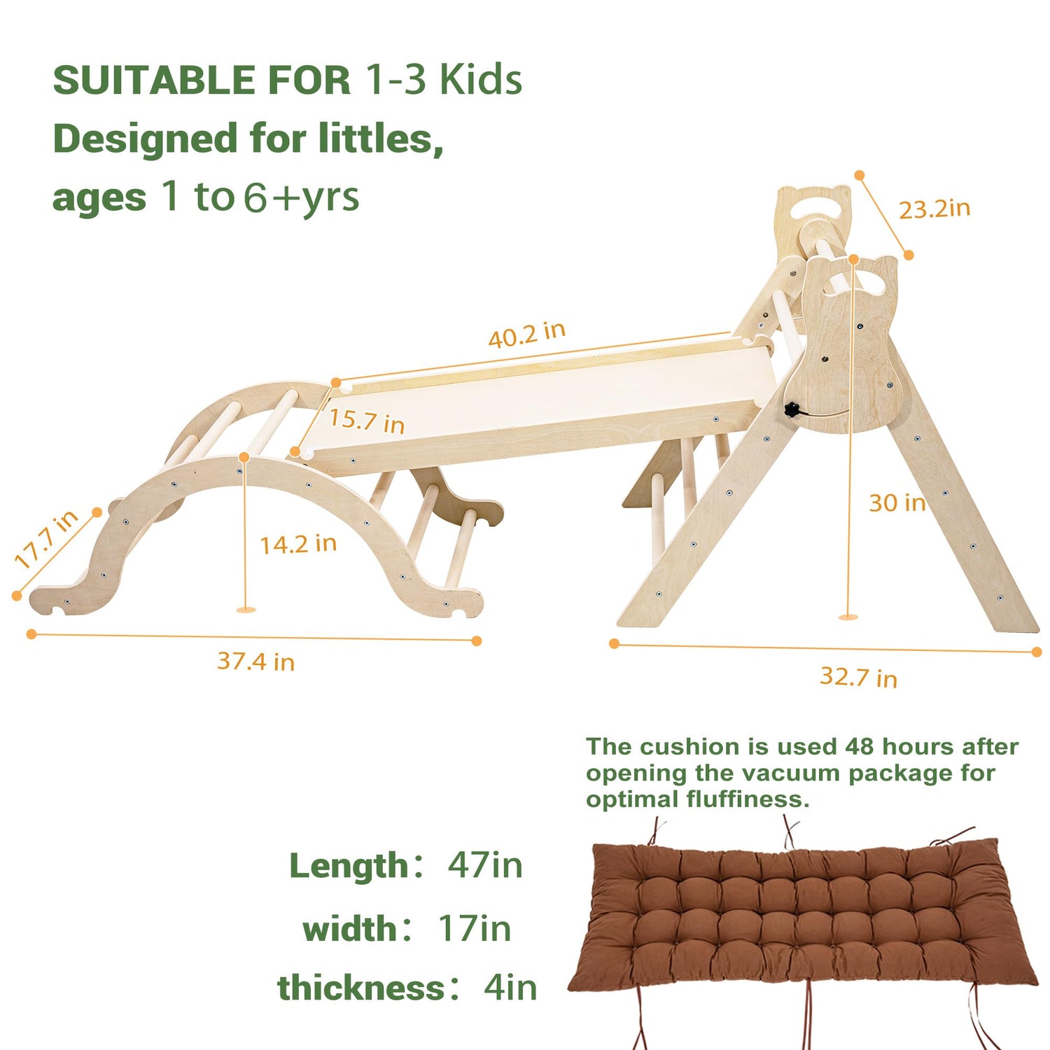 - Versatile Play Modes: The indoor jungle gym includes pikler triangle, s-lide, arch and arch cushion; climbing ladder, imitating rock climbing, ladder, arch climber, slid-e, bridge, roacking arch 7-in-1, saving space