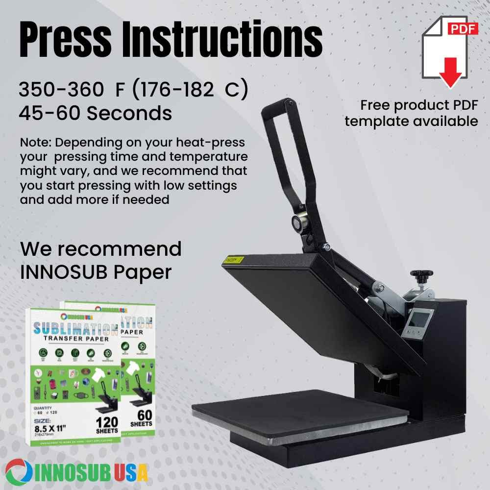 Pressing Time: 360-370F for 60-70 seconds, medium pressure.