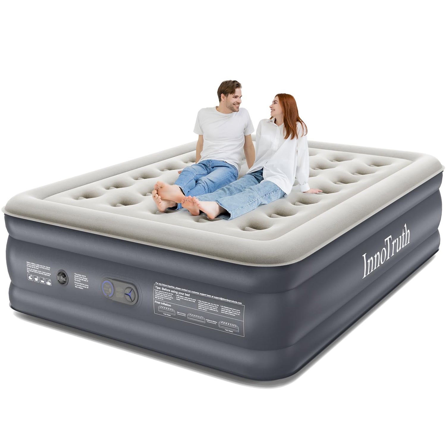 InnoTruth Queen Air Mattress with Built in Pump, 18" Raised Blow Up Colchones Inflables Airbed for Guests & Home, Inflatable Mattresses, Ideal for Home Use and Outdoor Camping, 600lb Weight Capacity