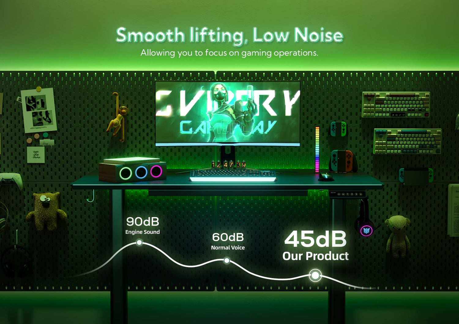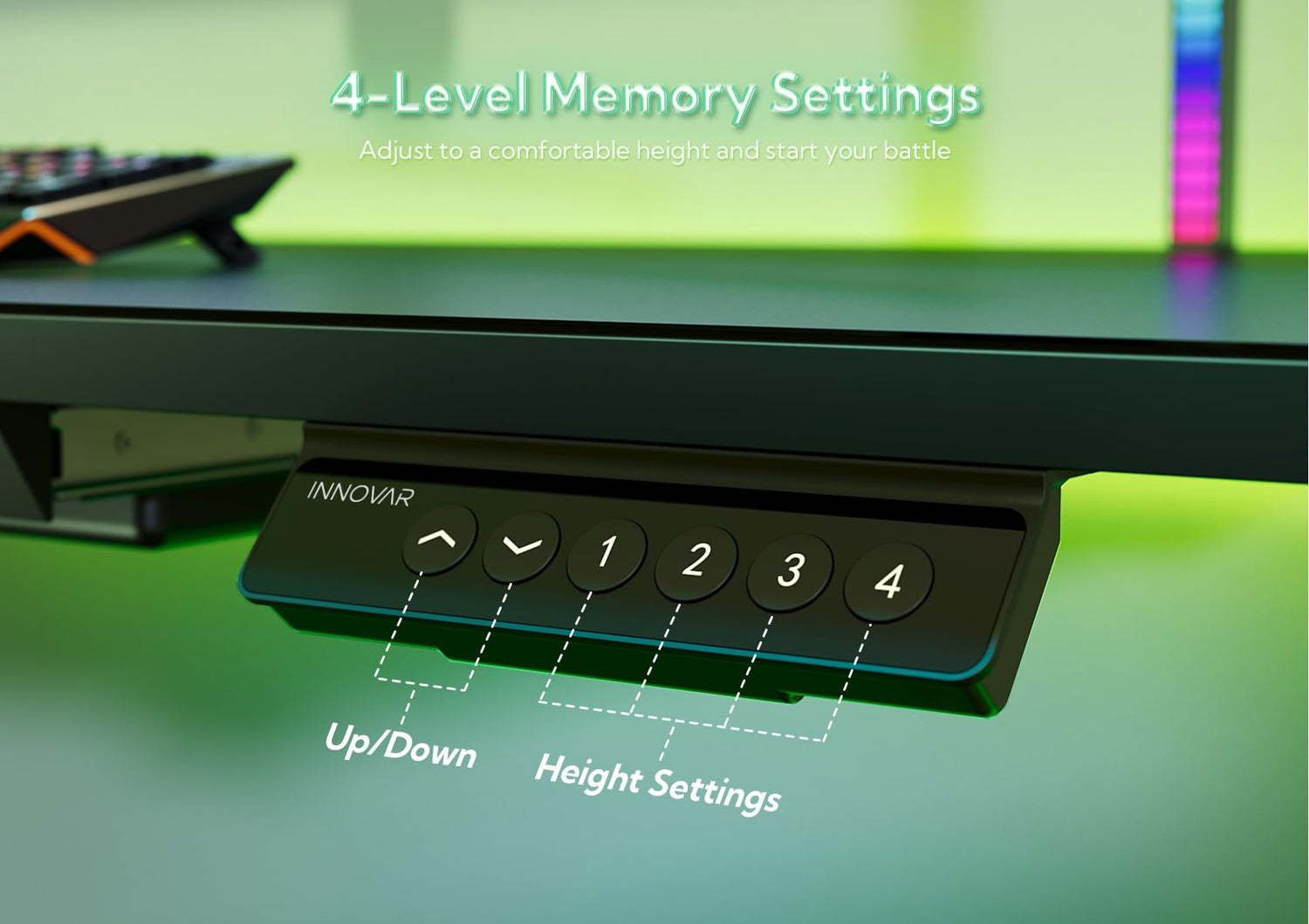 - Freely adjustable height: Don't let the desktop height affect your operation! With a continuous height adjustment of 28.3" to 46.4" and 4 height memory settings, you can find the most suitable height for your battle.