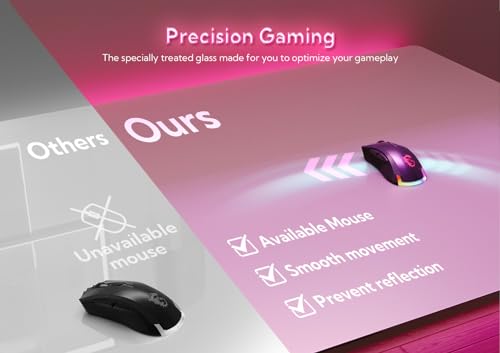 - Extra-large operating space, designed specifically for gaming: The extra-large gaming glass "mouse pad," with a 47.2"×23.6" specially treated glass desktop, is optimized for laser and optical gaming mice to ensure fast and precise mouse movement.