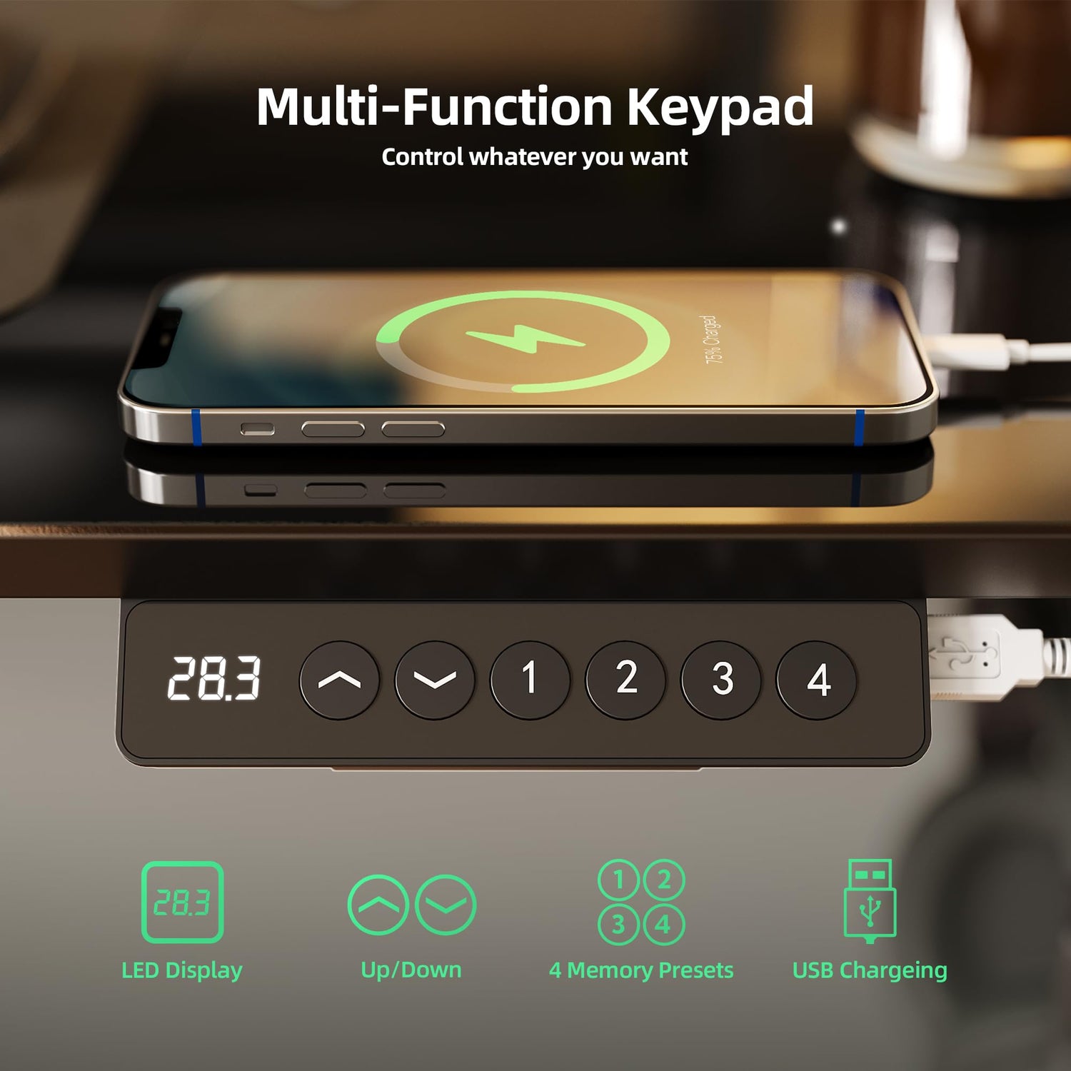 - ADJUSTABLE DESK: This adjustable standing desk ranges from 30.7" to 47.6" in height,and features 4 height memories for easy height control at the push of a button. With a new generation motor, this stand up desk offers smooth adjustment with a noise level below 50 dB.