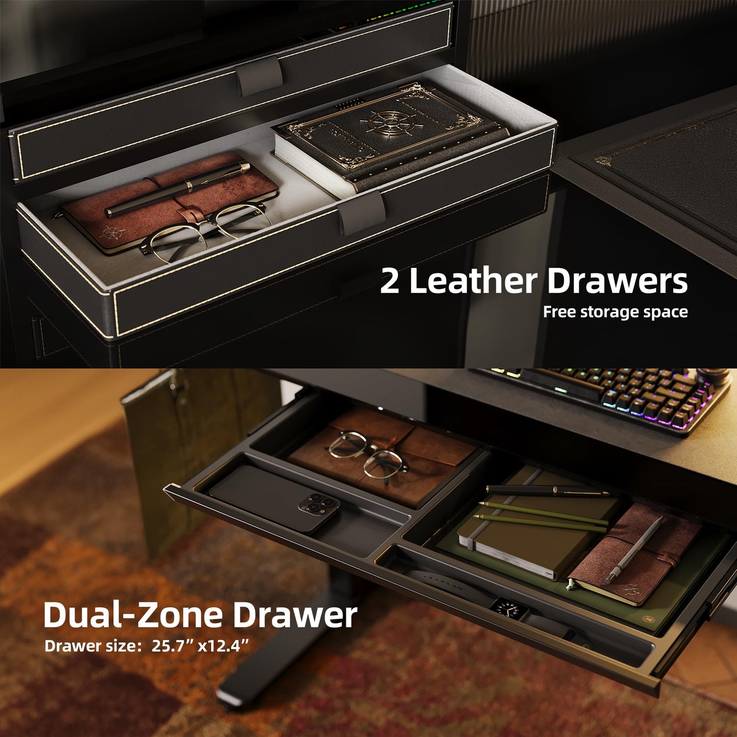 - 3 PRACTICAL STORAGE DRAWERS: This height adjustable desk is equipped with a 4-zones under drawer and 2 upgraded leather desktop drawers, providing ample organizing space for a variety of home office tasks, maintaining a clean and pleasing desktop.