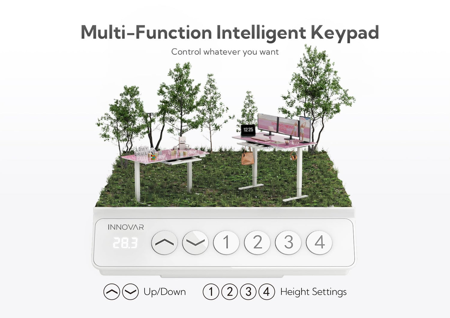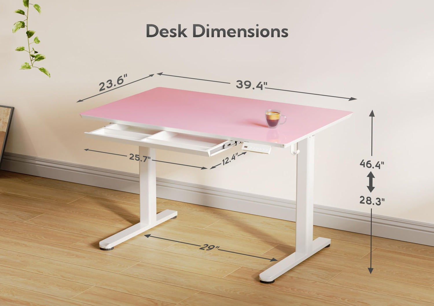 - Electric Height Adjustment: The glass version of the electric height-adjustable desk offers the convenience of electrically adjusting the height (28.3"-46.4") to accommodate different heights and work needs. This design not only benefits users but also promotes a healthier working posture.