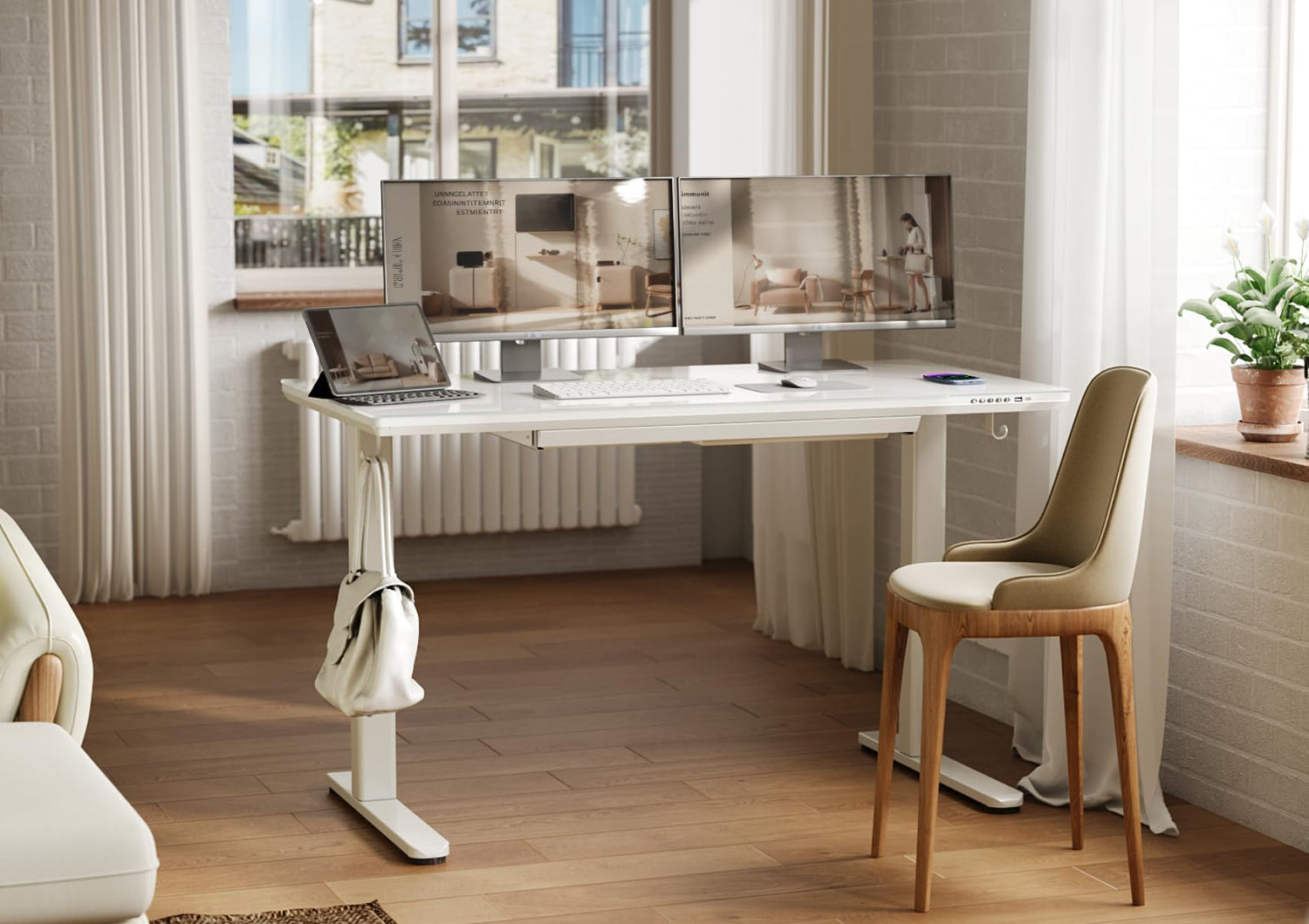 INNOVAR Wireless Charging Glass Standing Desk with Drawers Partition Drawers: The built-in pull-out drawers provide a hidden storage solution for easy desktop organization, giving you more space and less clutter Electric Height Adjustment: Our standing desk is equipped with a robust motor that smoothly adjusts the height from 28.3 inches to 46.5 inches (including the 2.36-inch desktop thickness) with four programmable height presets for quick and easy adjustment to your preferred height, catering to your needs Outstanding Stability: The sit stand desk is made of sturdy steel.Contains an industrial-grade steel frame that ensures outstanding stability. Tempered Glass Table Top: The modern design of the tempered glass desktop adds elegance and durability to the standing desk. It is easy to clean and can even be used for writing. Please note that the clamping arm should not be used on top of the glass Simple Assembly: Assembling our glass standing desk is a breeze. Just attach the legs to the top, plug in the power cord, and you're good to go. The desk is capable of supporting up to 132 pounds