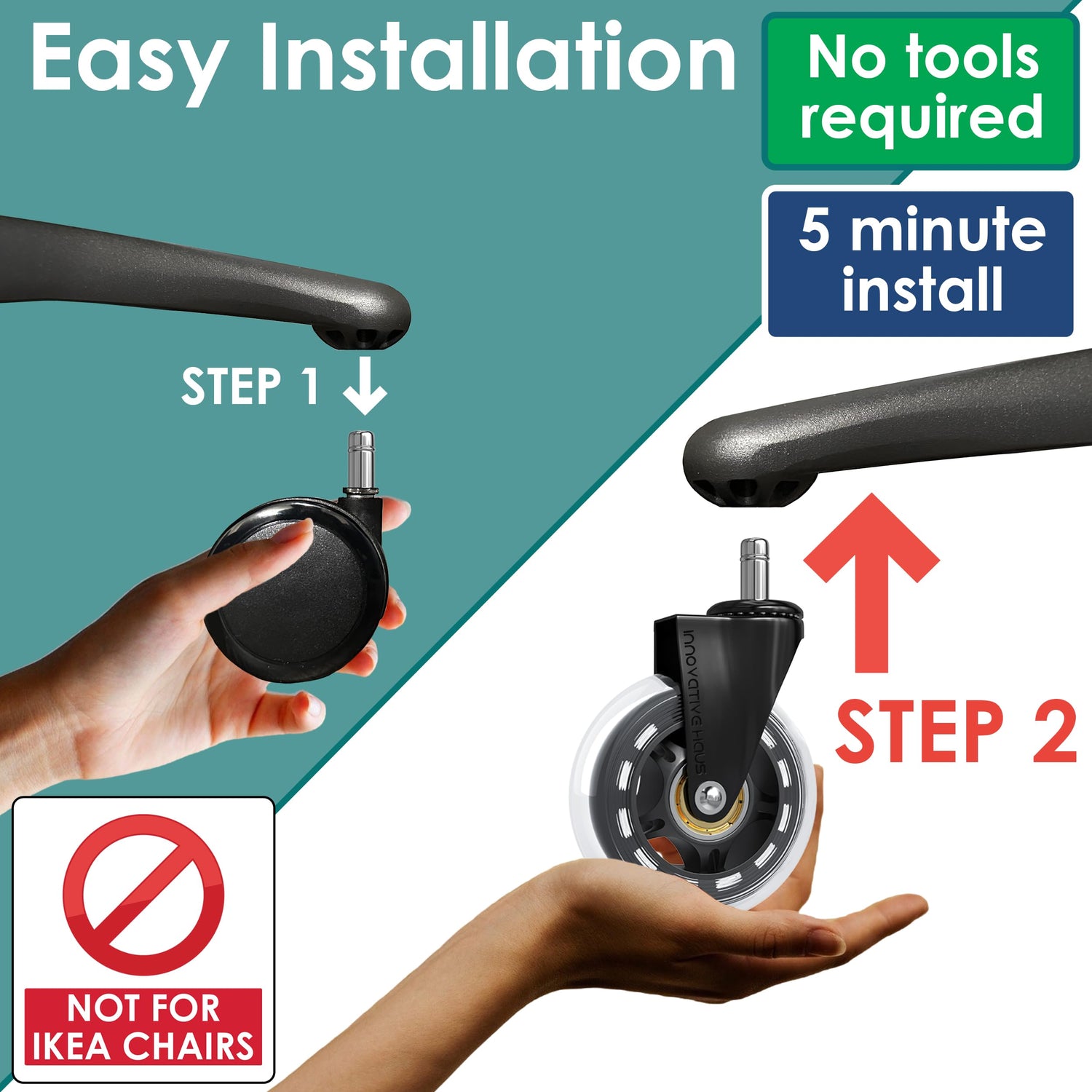 - Tool-Free, Quick Installation: Easily replace your old wheels without any tools; these chair wheels snap right into place in just 10 minutes, upgrading your office chair effortlessly.