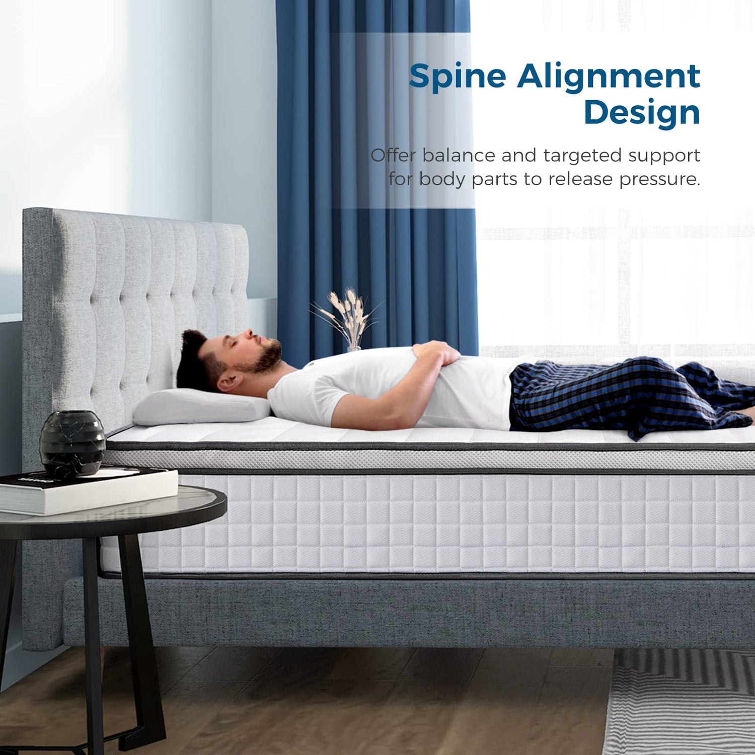 - 【Motion Isolation & Pressure Relief】This 10 inch twin mattress designed with layers of responsive CertiPUR-US certified memory foam and low-motion transfer 7-zoned pocket coils that can effectively cushion high-pressure areas of the body, and which are able to significantly improve your sleep quality by offering exactly point-to-point support and reducing the impact on sleep partner of turning over at night