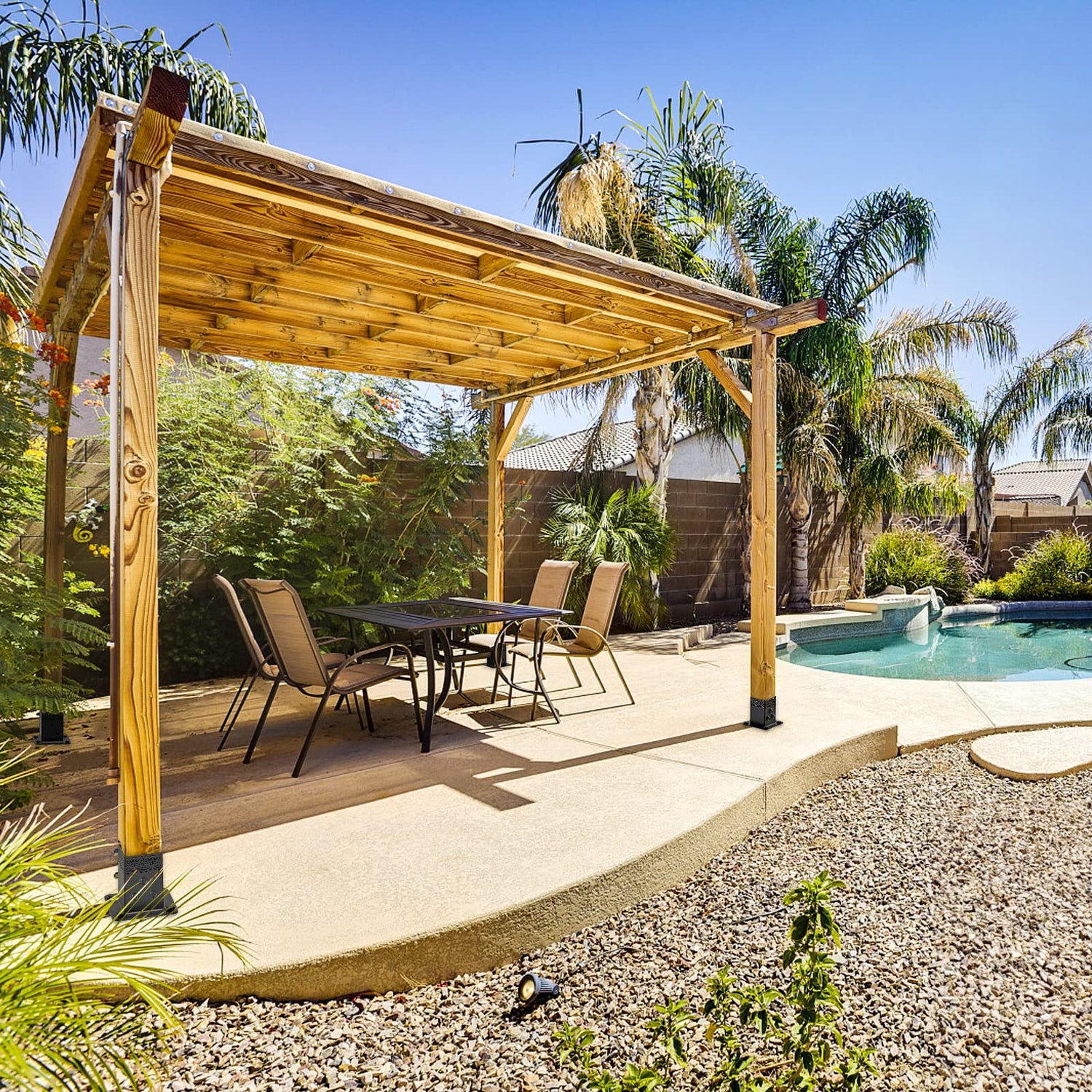 - Easy To Install: Put the post base on concrete or cement surface to positioning it, pre-drill 10mm holes on concrete or cement ground for expansion bolts to install, and put the wooden post (Actual size 3.5x3.5'') into it, then fix the wood with screws;