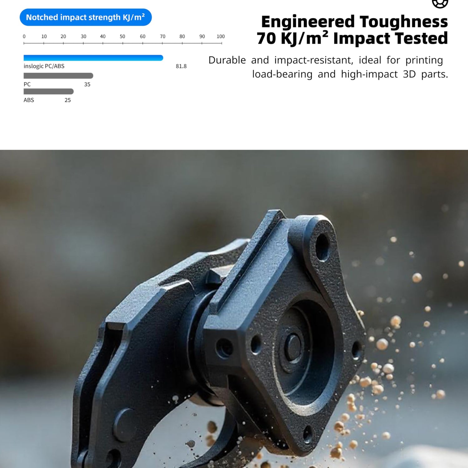 • 【Engineered Toughness – 70 KJ/m² Impact Tested】Durable and impact-resistant, ideal for printing load-bearing and high-impact 3D parts.