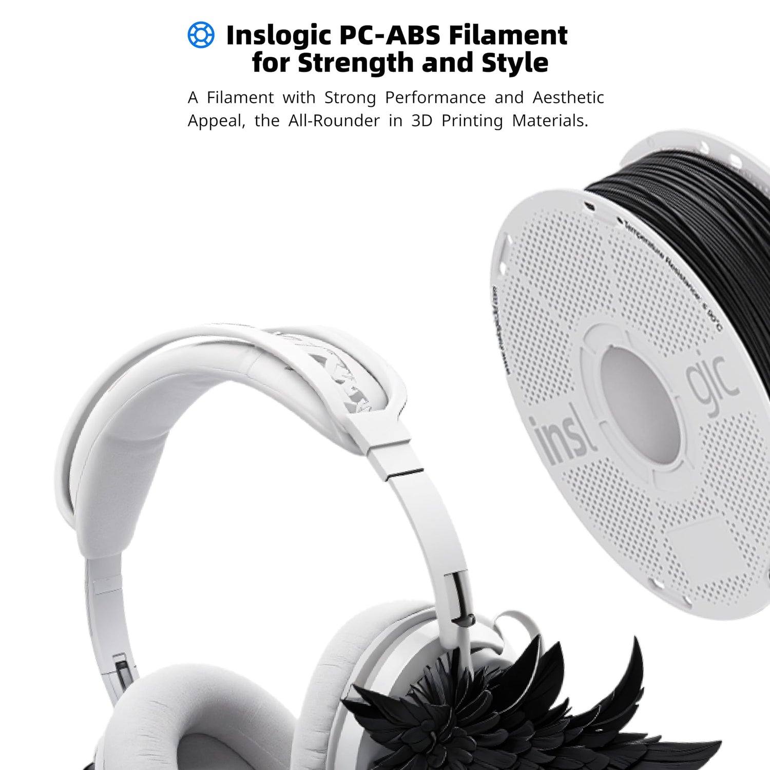 Inslogic PC-ABS Filament 1.75mm, Black Polycarbonate Filament 1.75mm Blend with ABS 1kg - Tough and Heat Resistant 1.75mm 3D Printer Polycarbonate Filament, Dimensional Accuracy +/- 0.02mm