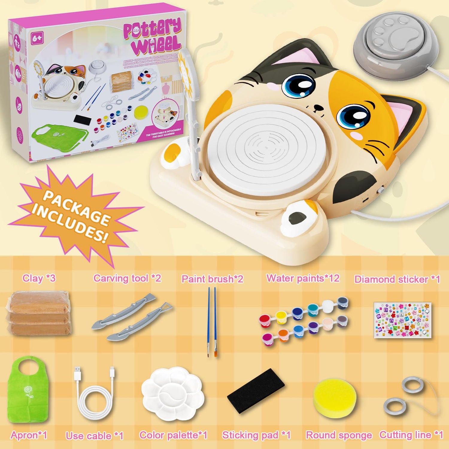 - Perfect Gift for Crafty Kids : Whether shopping for 10-year-old girl birthday gifts, Christmas, or Easter, this cat-themed pottery wheel is a hit! Tailored for crafts for girls 8-12 (and boys!), it combines hands-on learning with pure fun. A unique blend of painting kits for kids ages 4-8+ and advanced pottery tools, it’s the perfect upgrade for aspiring artists ready to level up their skills!